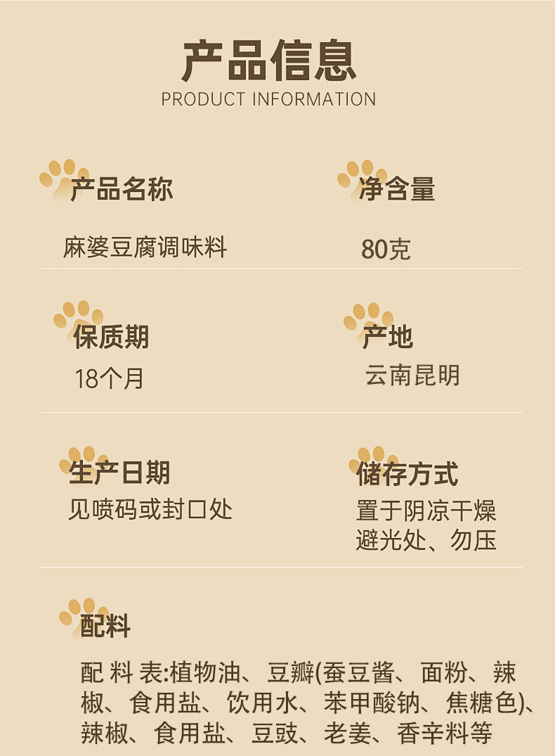 商品名称:神仙嘴麻婆豆腐调料包80g