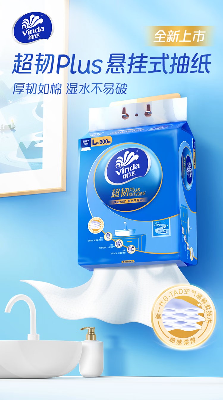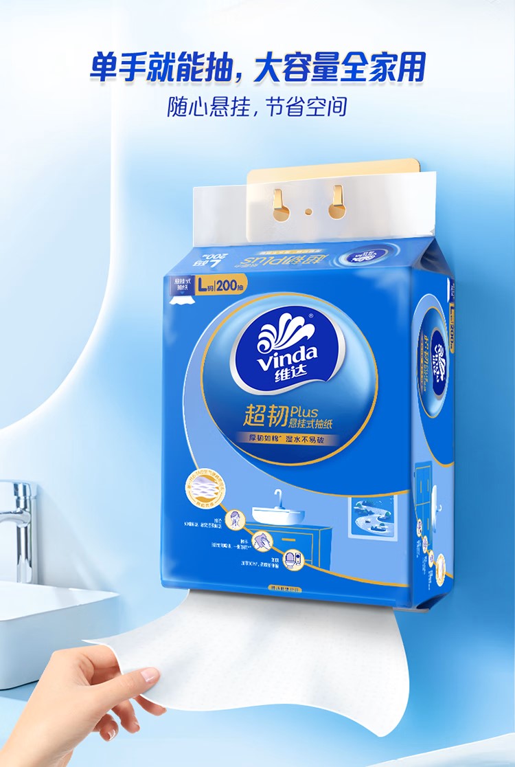 Vinda/维达超韧Plus悬挂式纸巾L码3层200抽/提V2588-A