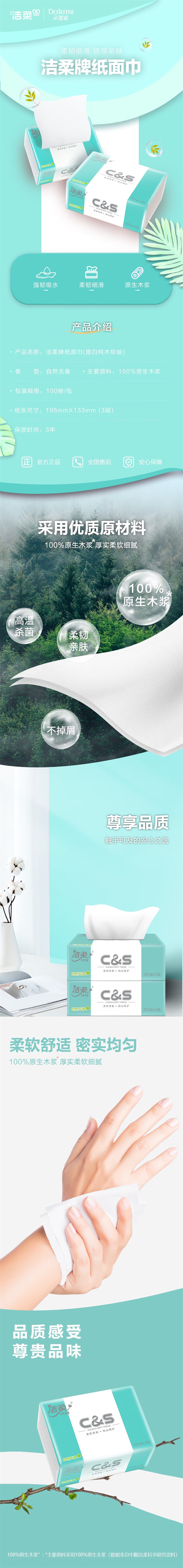 商品名称:C&S/洁柔雅白纯木自然无香软抽面巾纸3层100抽*3包TR071401A
