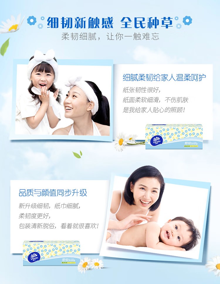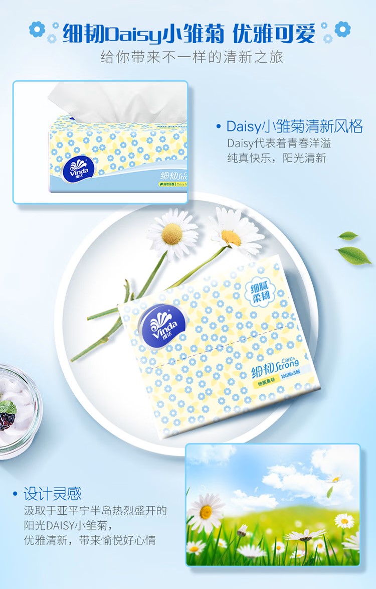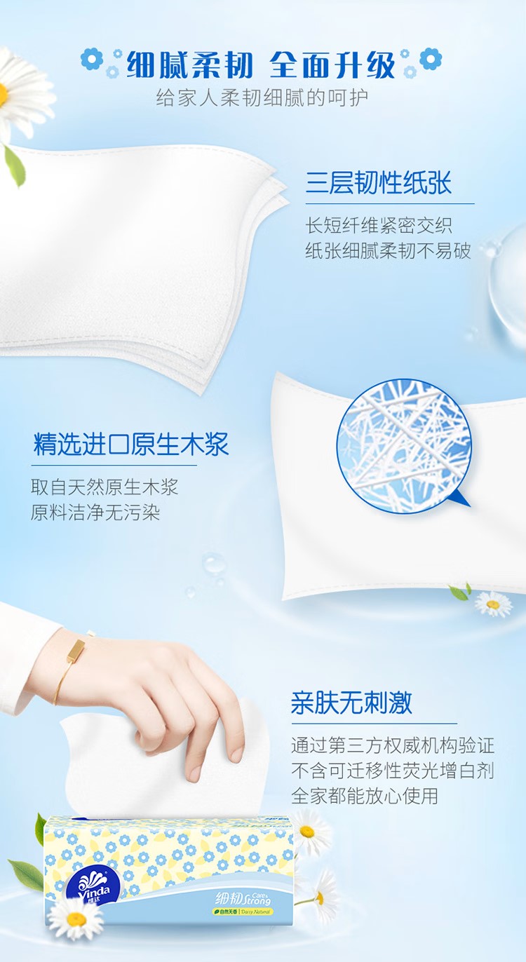 商品名称:Vinda/维达细韧自然无香抽纸XS码三层100抽*3包V2607