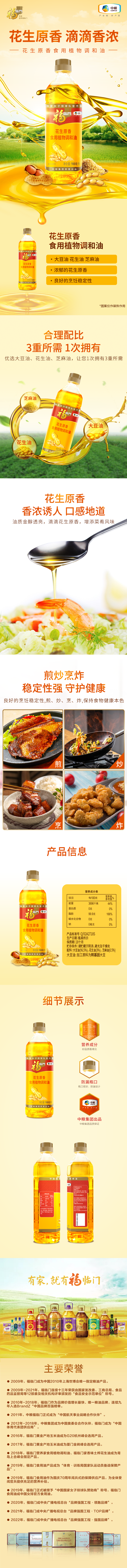 商品名称:中粮福临门花生原香食用植物调和油礼盒900ml*2瓶