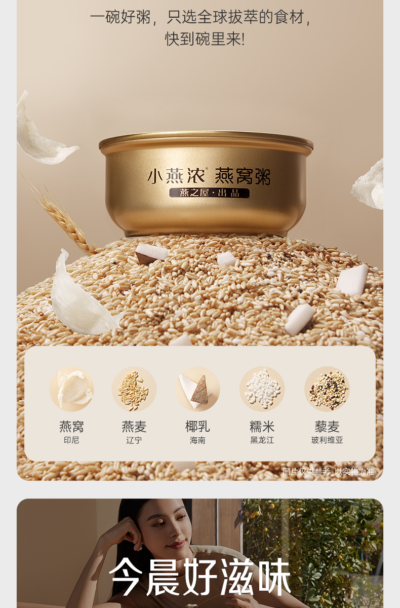 商品名称:YANPALACE/燕之屋小燕浓·生椰藜麦燕窝粥礼盒200g*6碗