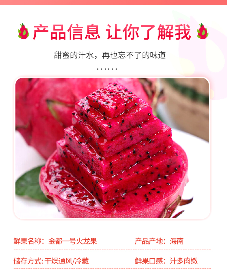 商品名称:【顺丰配送】云南嘟嘟海南金都一号火龙果 单果8两+
