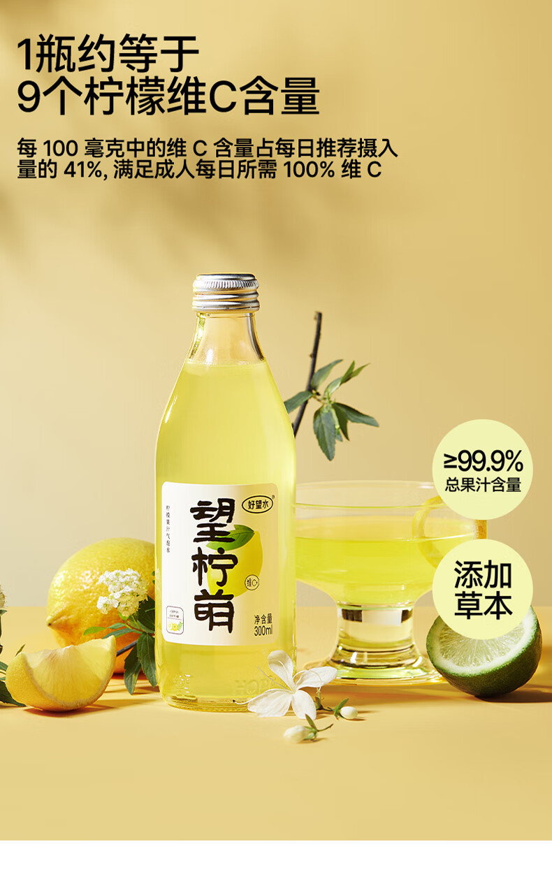 商品名称:好望水望柠萌果汁气泡水300ml*6瓶(泡沫箱)