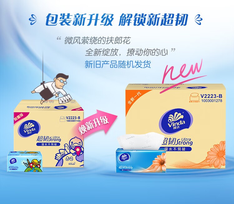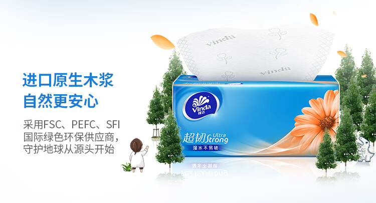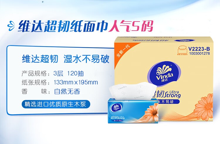 商品名称:Vinda/维达超韧原生木浆无香型抽纸S码3层120抽*3包V2223-B
