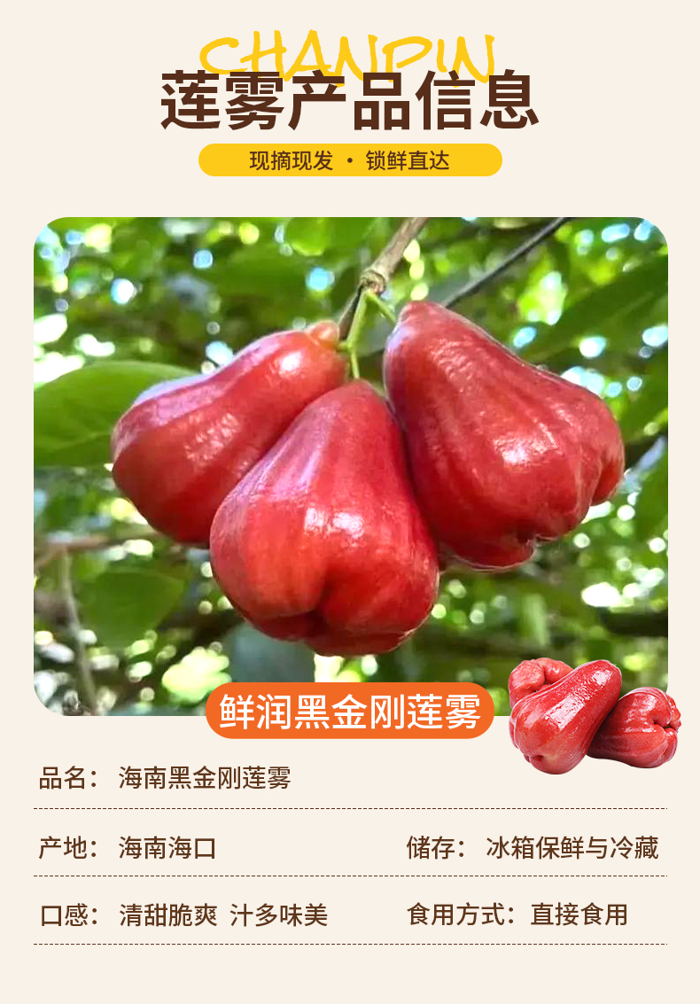 商品名称:【顺丰配送】云南嘟嘟海南黑金刚莲雾 单果70-100g
