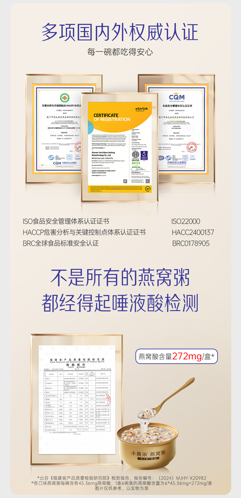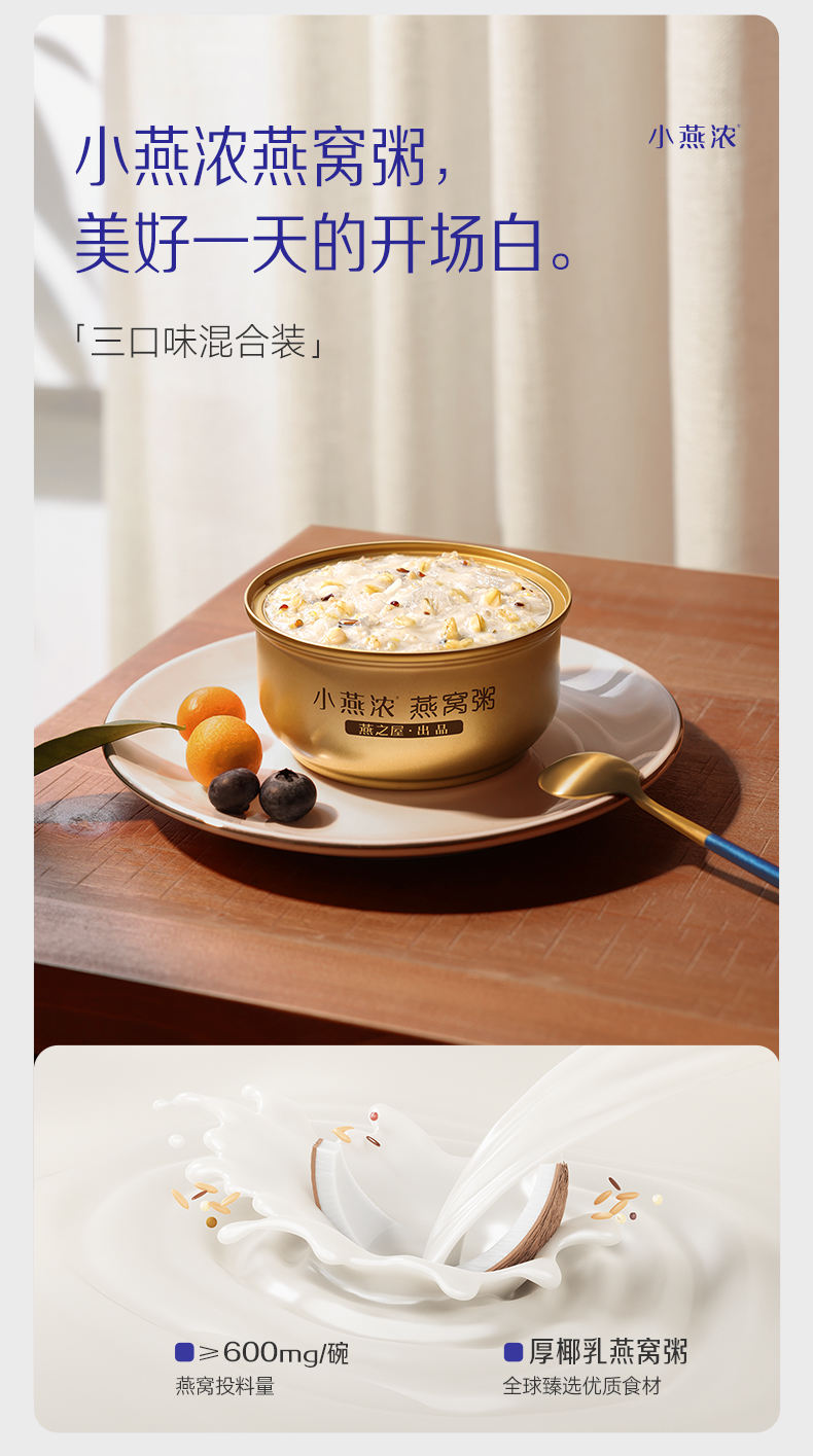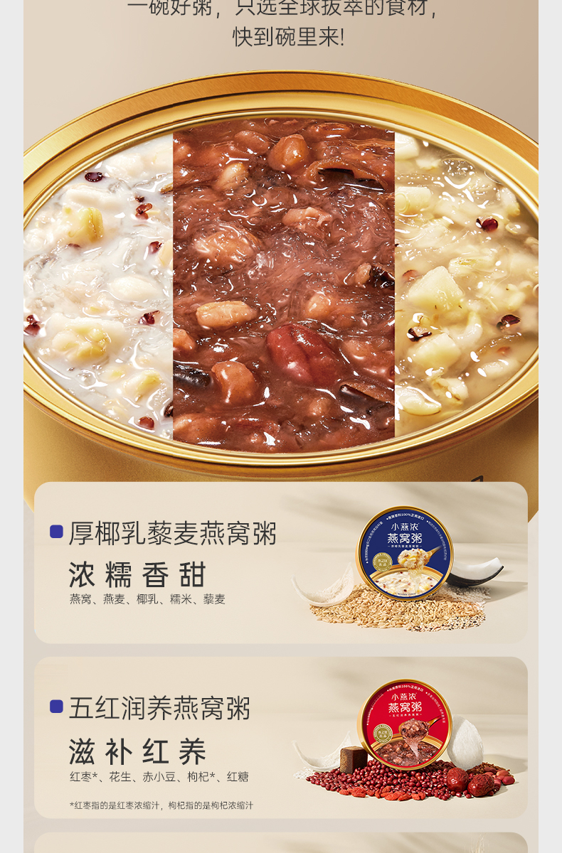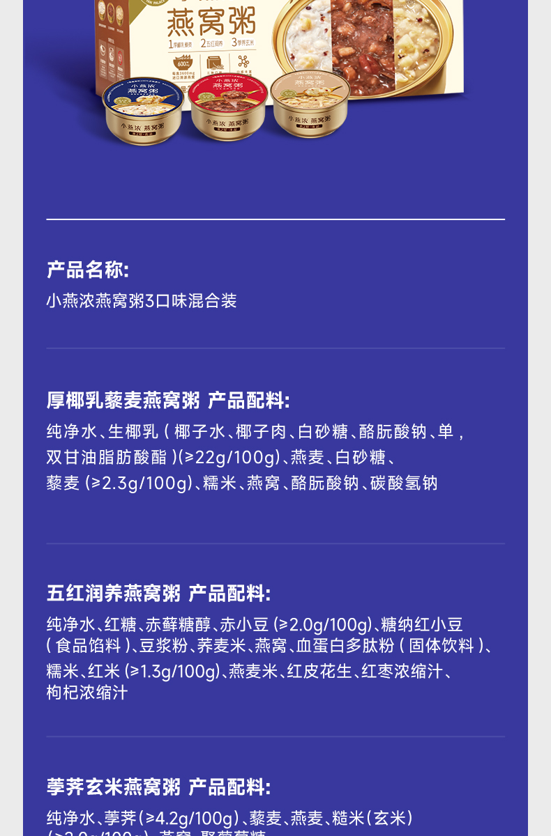 商品名称:YANPALACE/燕之屋小燕浓3口味混合装燕窝粥礼盒252g*6碗