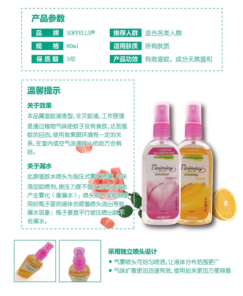 商品名称:Soffell索菲 蚊怕水防蚊喷雾 玫瑰味 80ml