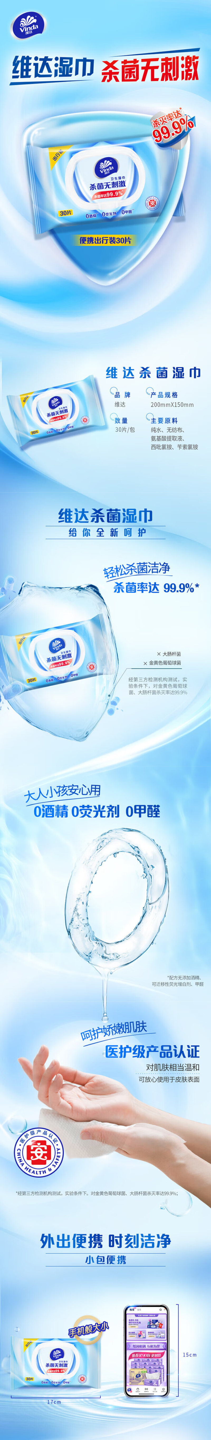 商品名称:Vinda/维达杀菌湿巾30片VW1037