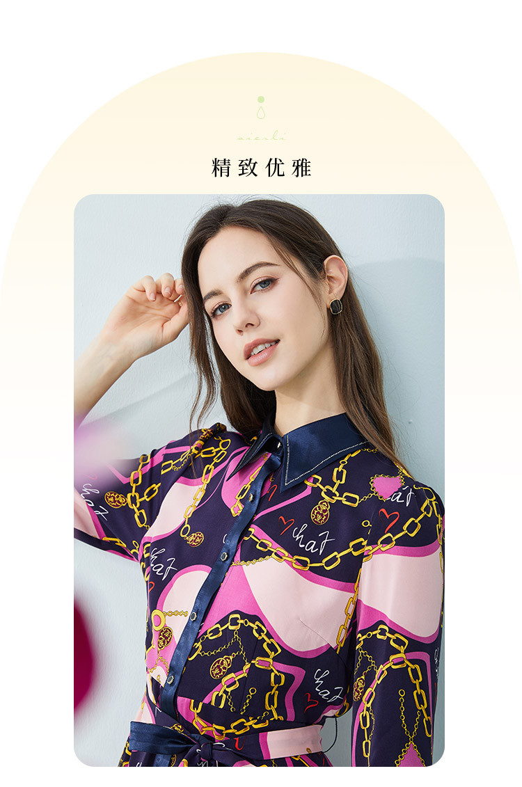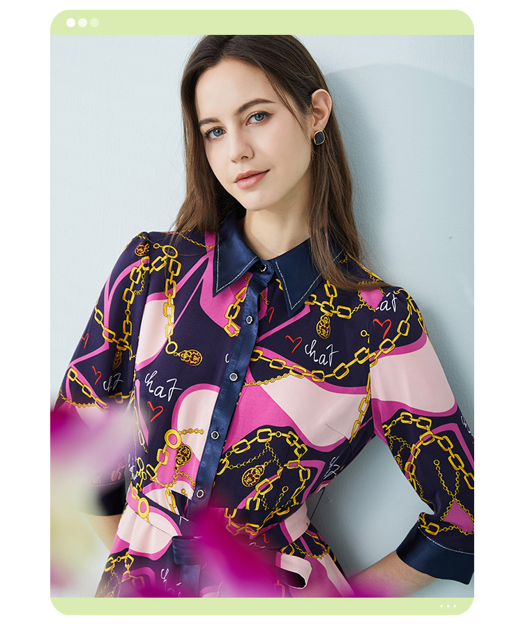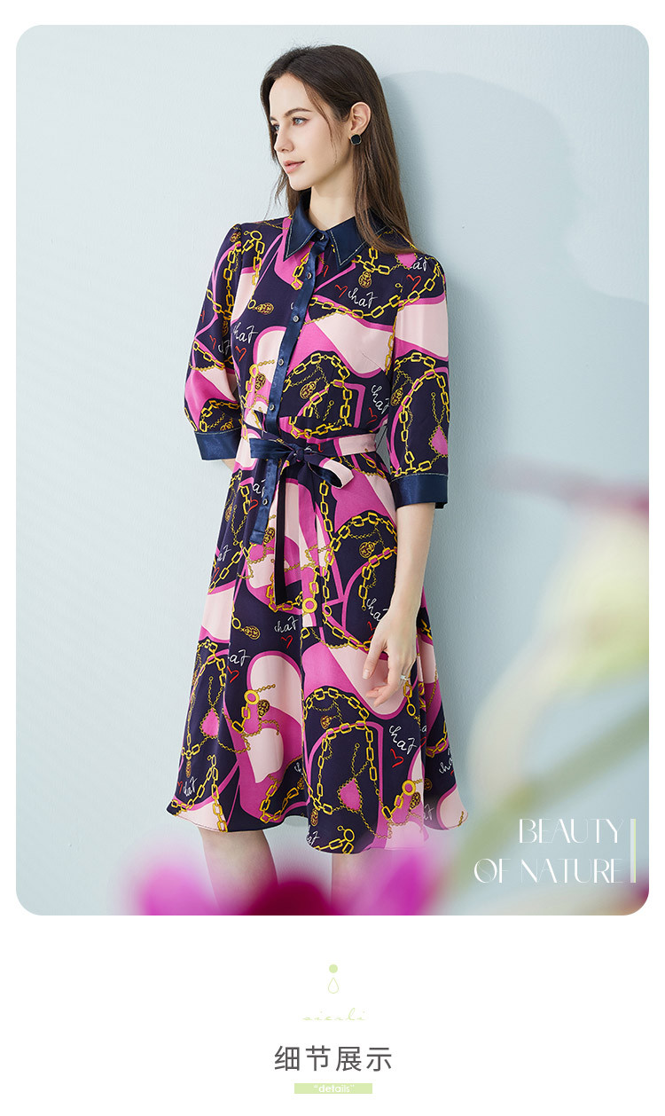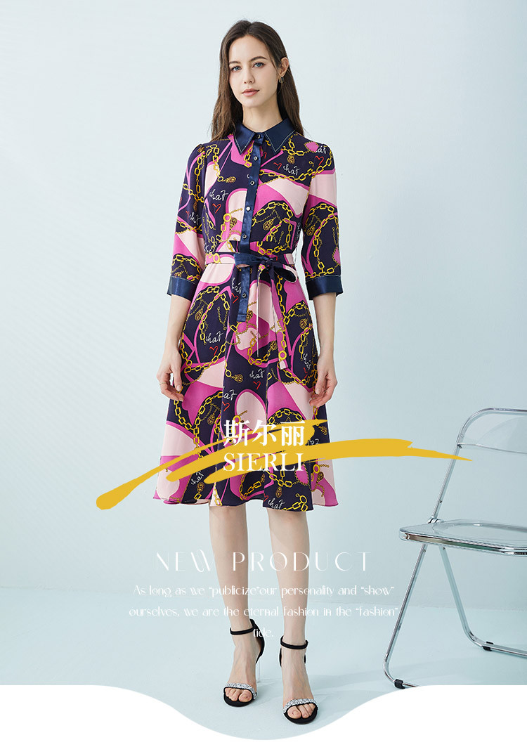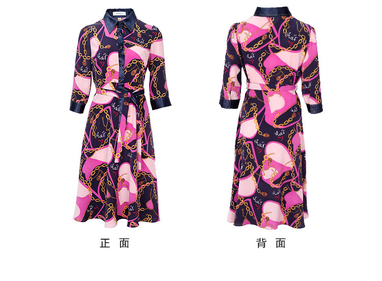 商品名称:[商场同款]秋季名媛风优雅印花链条西装翻领烫钻收腰连衣裙 122399