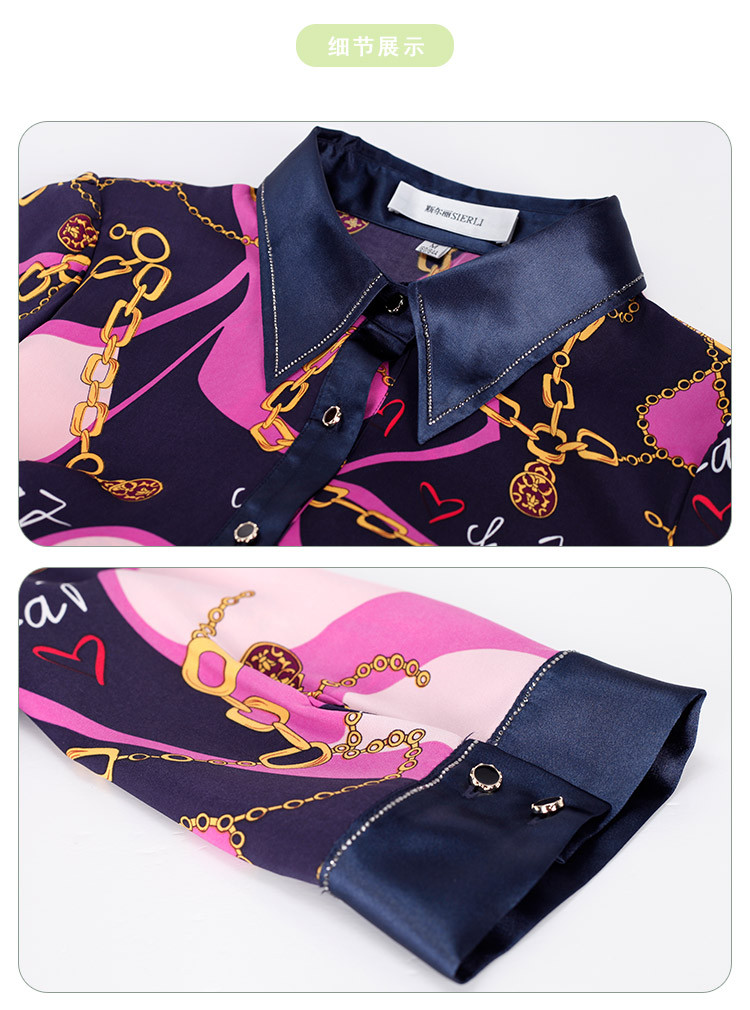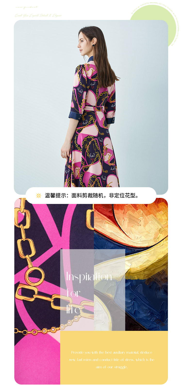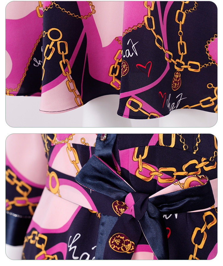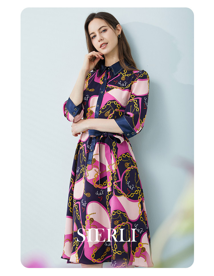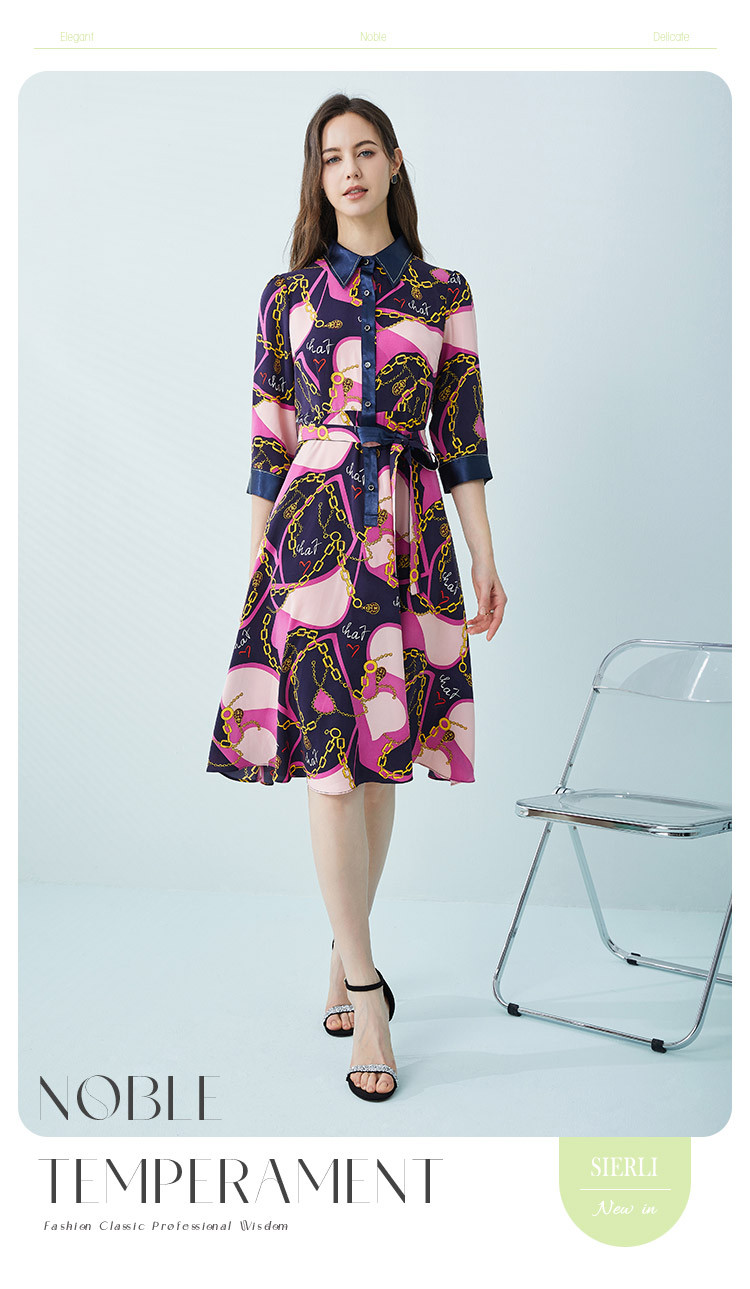 商品名称:[商场同款]秋季名媛风优雅印花链条西装翻领烫钻收腰连衣裙 122399