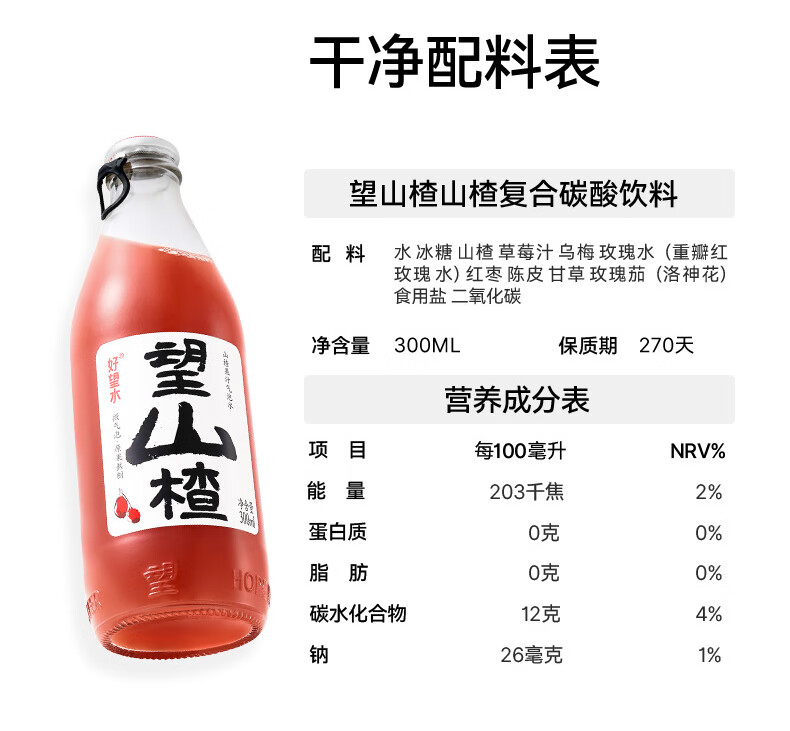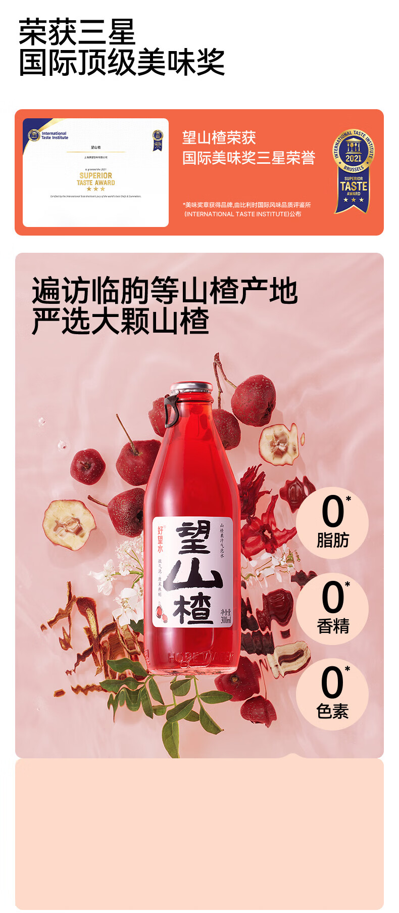 商品名称:好望水望山楂山楂复合碳酸饮料300ml*6瓶(泡沫箱)
