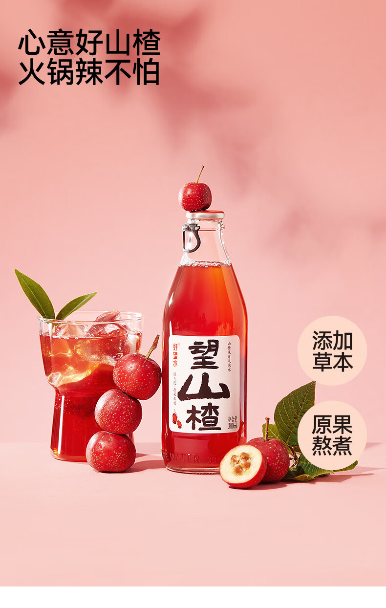 好望水望山楂山楂复合碳酸饮料300ml*6瓶(泡沫箱)