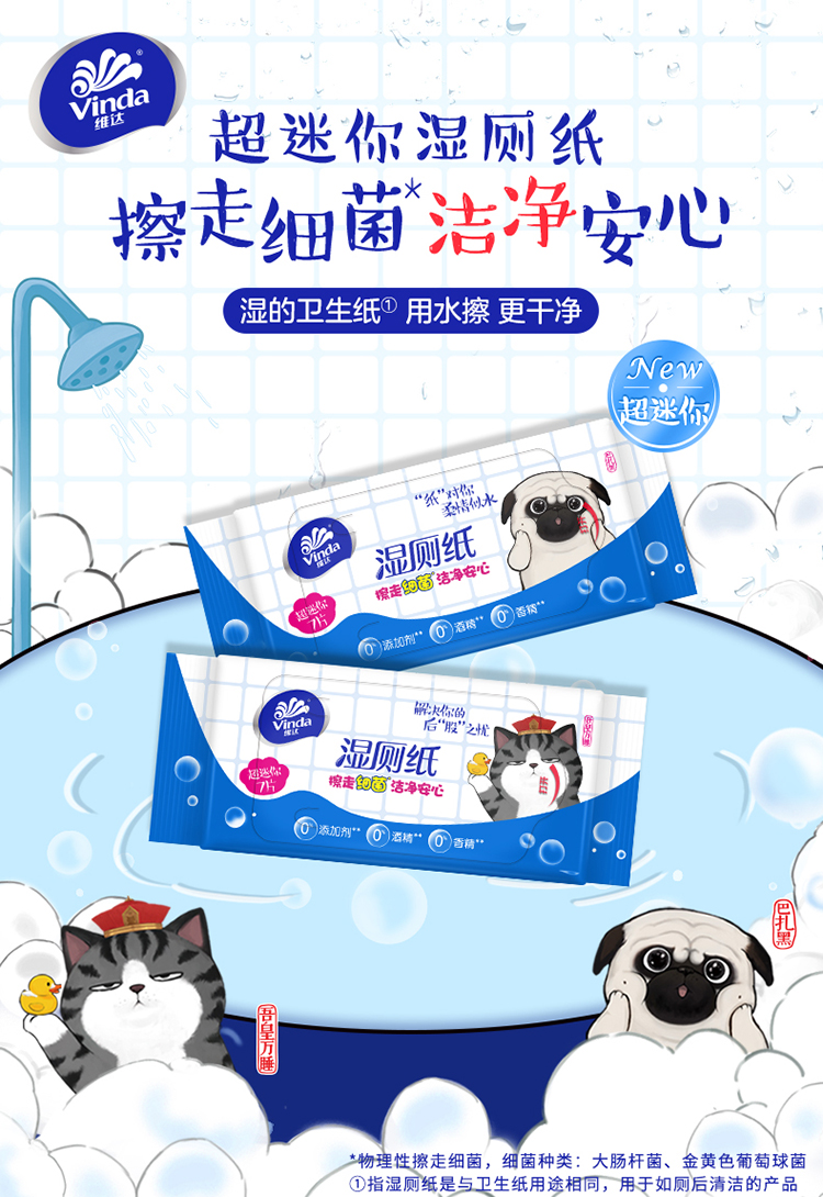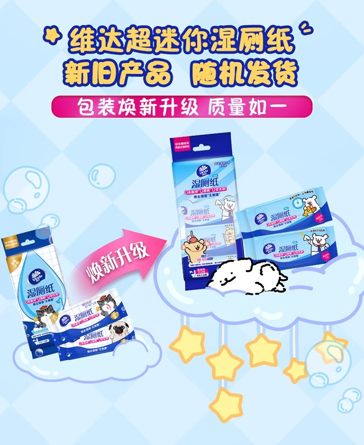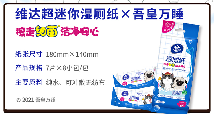 商品名称:Vinda/维达吾皇万睡超迷你湿厕纸独立包装7片*8小包VW3422