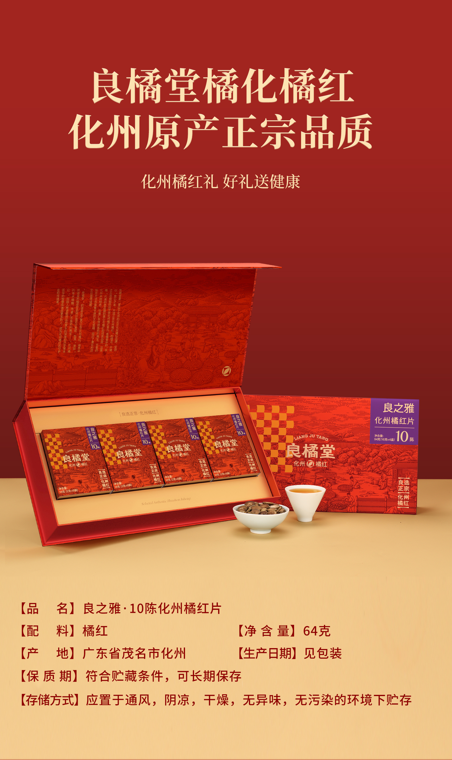 商品名称:良橘堂良之雅10陈化州橘红片64g