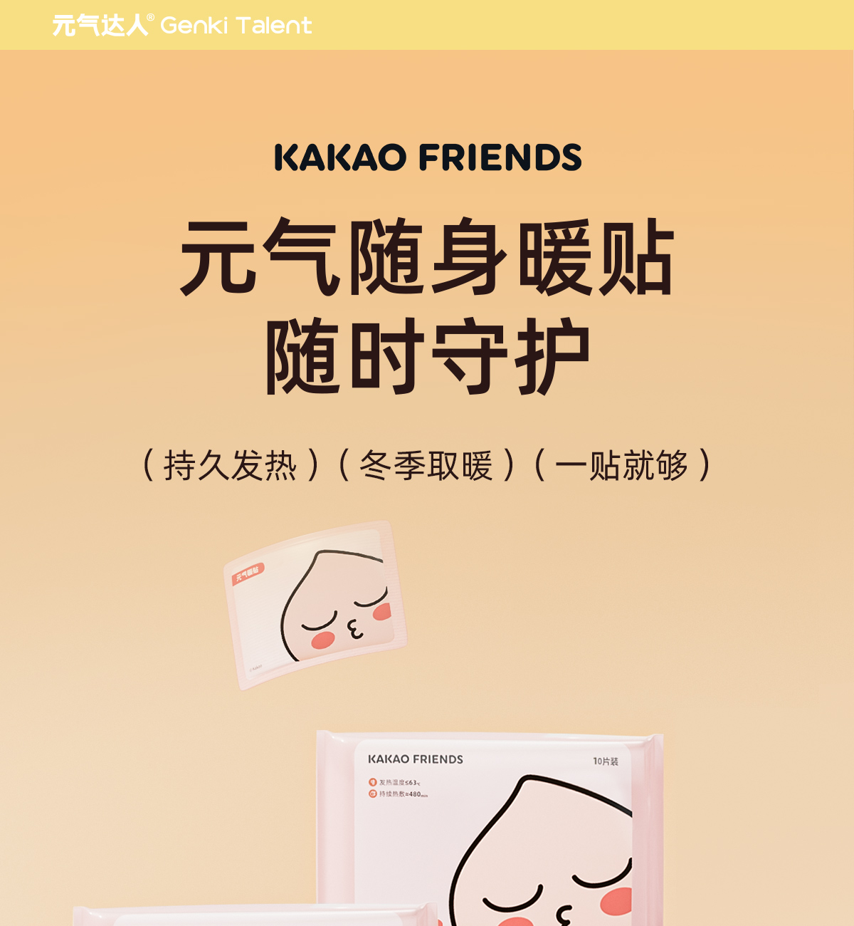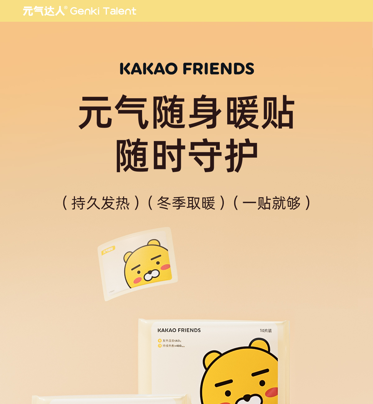 商品名称:元气达人KAKAO FRIENDS系列随身暖贴10片*5袋