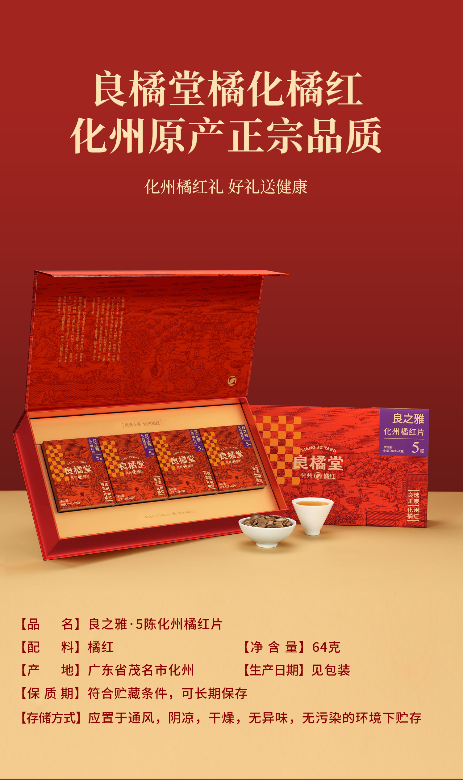 商品名称:良橘堂良之雅5陈化州橘红片64g