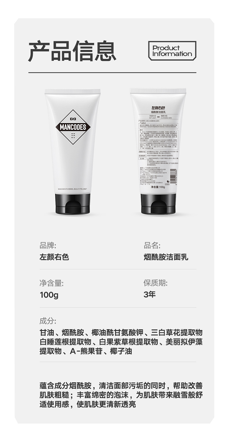 商品名称:MANCODES/左颜右色烟酰胺洁面乳100g