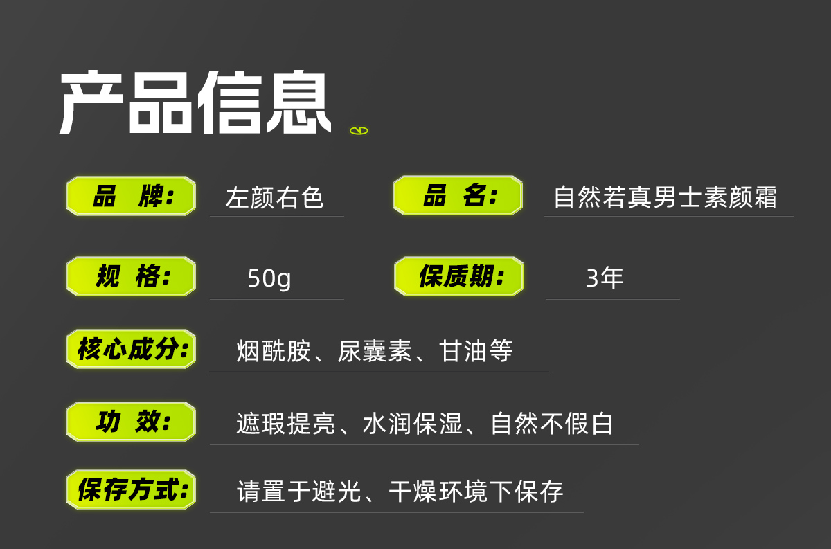 商品名称:MANCODES/左颜右色自然若真男士素颜霜50g