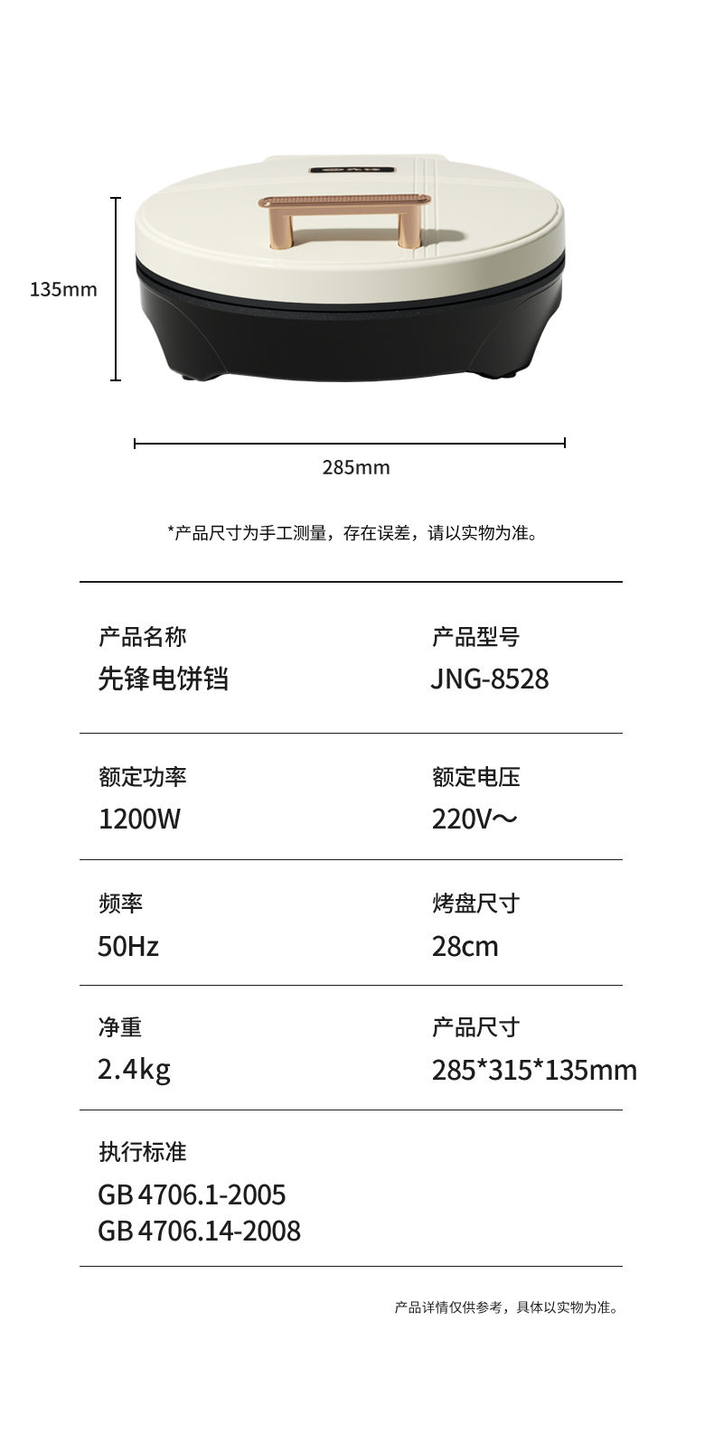 商品名称:SINGFUN/先锋28cm电饼铛JNG-8528