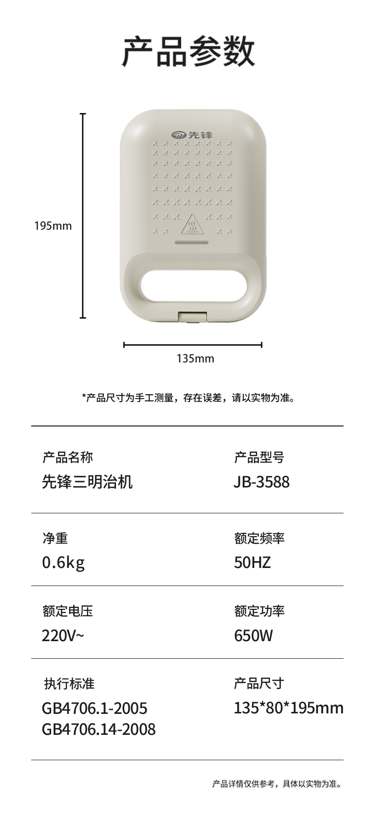 商品名称:SINGFUN/先锋三明治机JB-3588