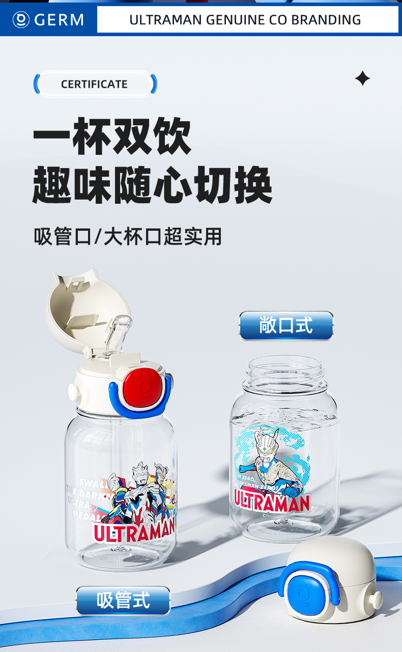 GERM/格沵600毫升奥特曼守护者儿童吸管水杯