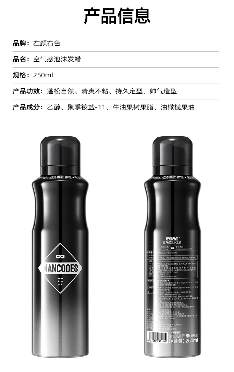 商品名称:MANCODES/左颜右色空气感泡沫发蜡250ml