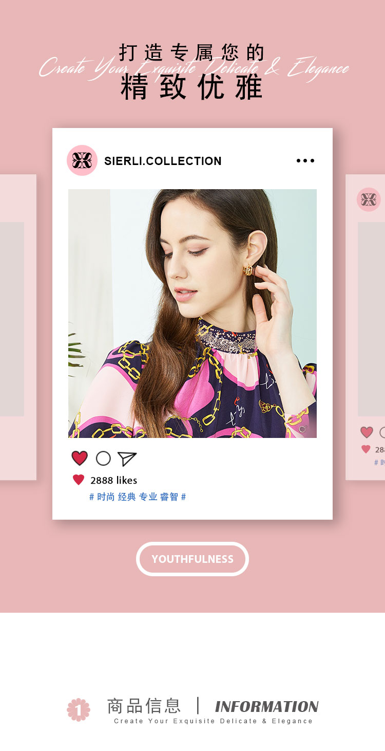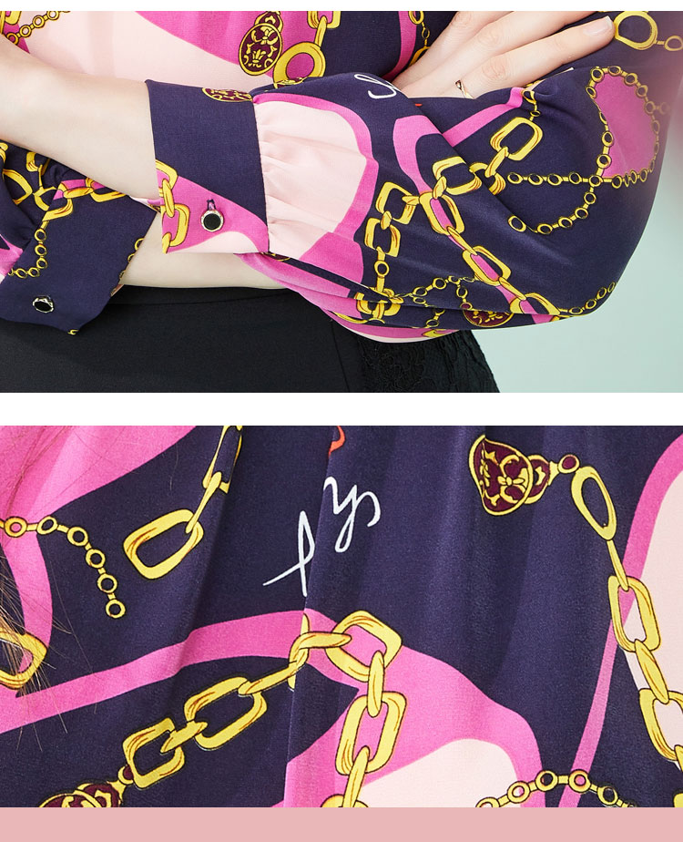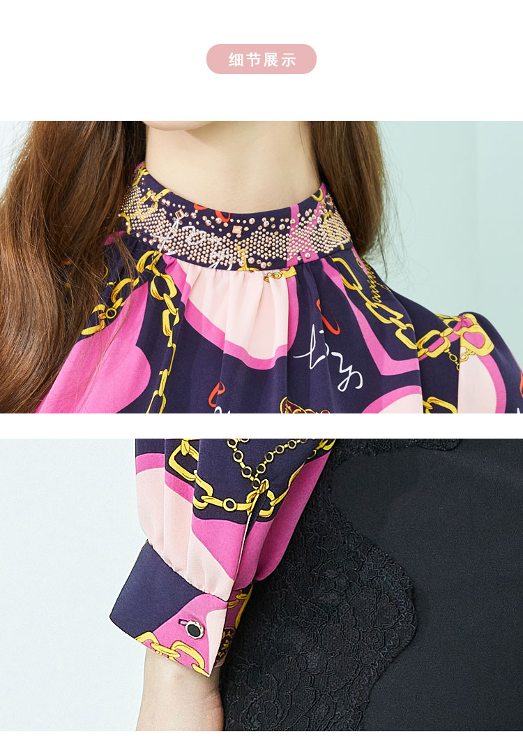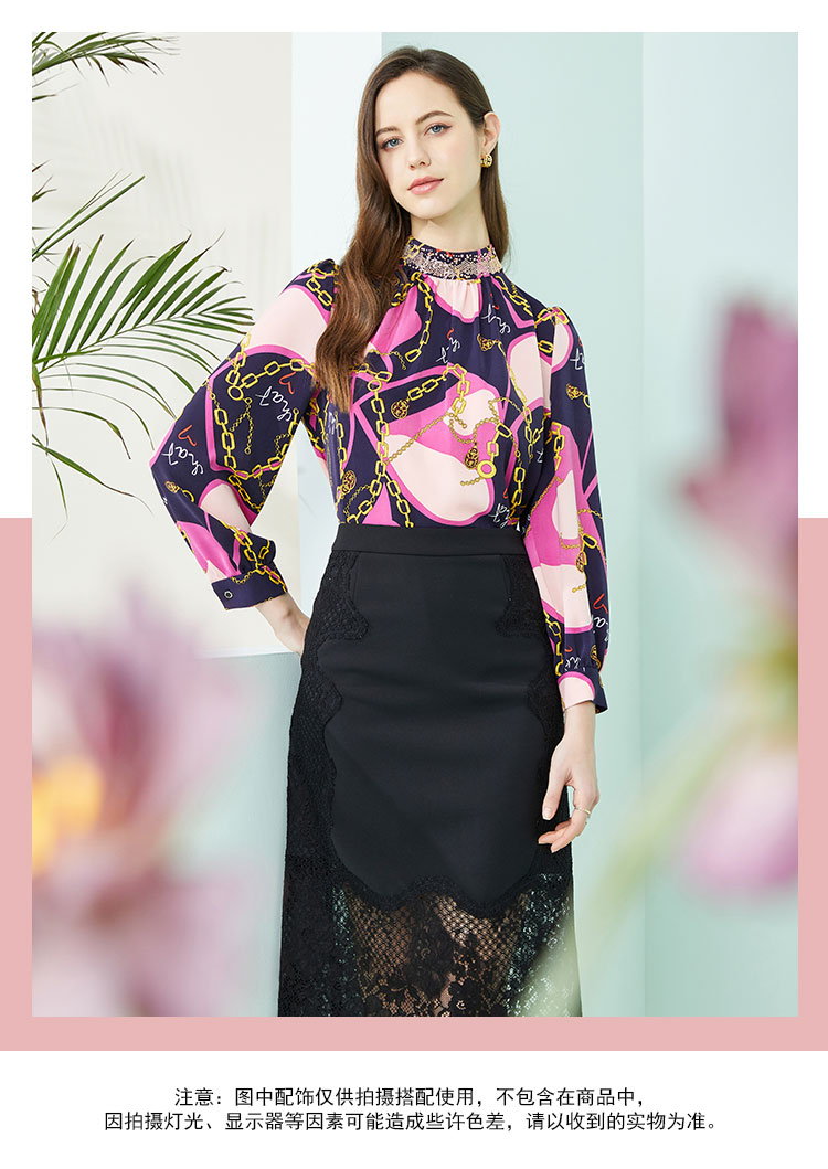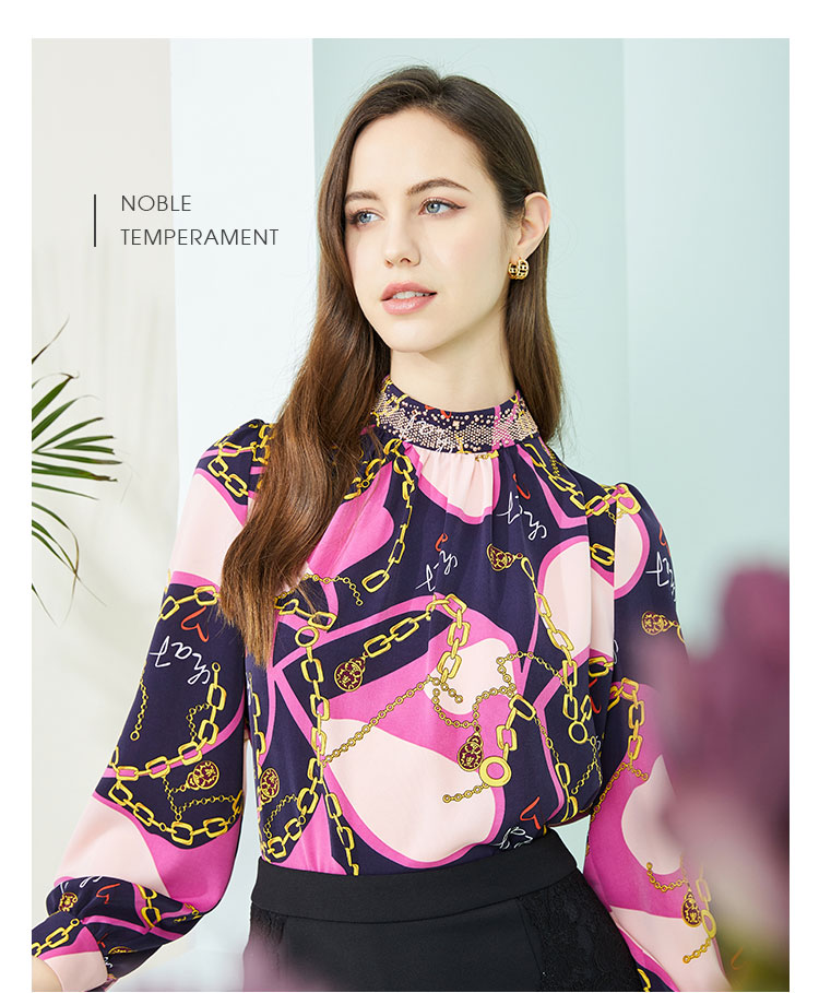 商品名称:春季复古链条印花立领褶皱烫钻长袖小上衣女式衬衫 218783