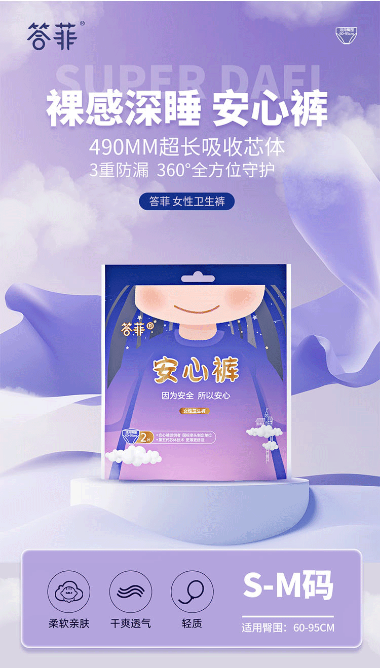 商品名称:答菲S-M码易开合安心裤2片