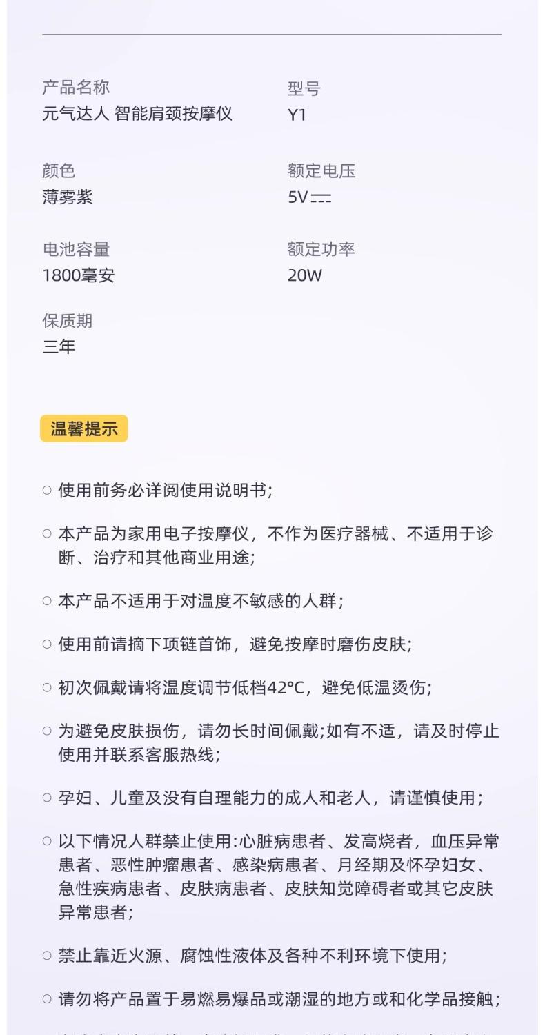 商品名称:元气达人智能肩部按摩仪-薄雾紫Y1