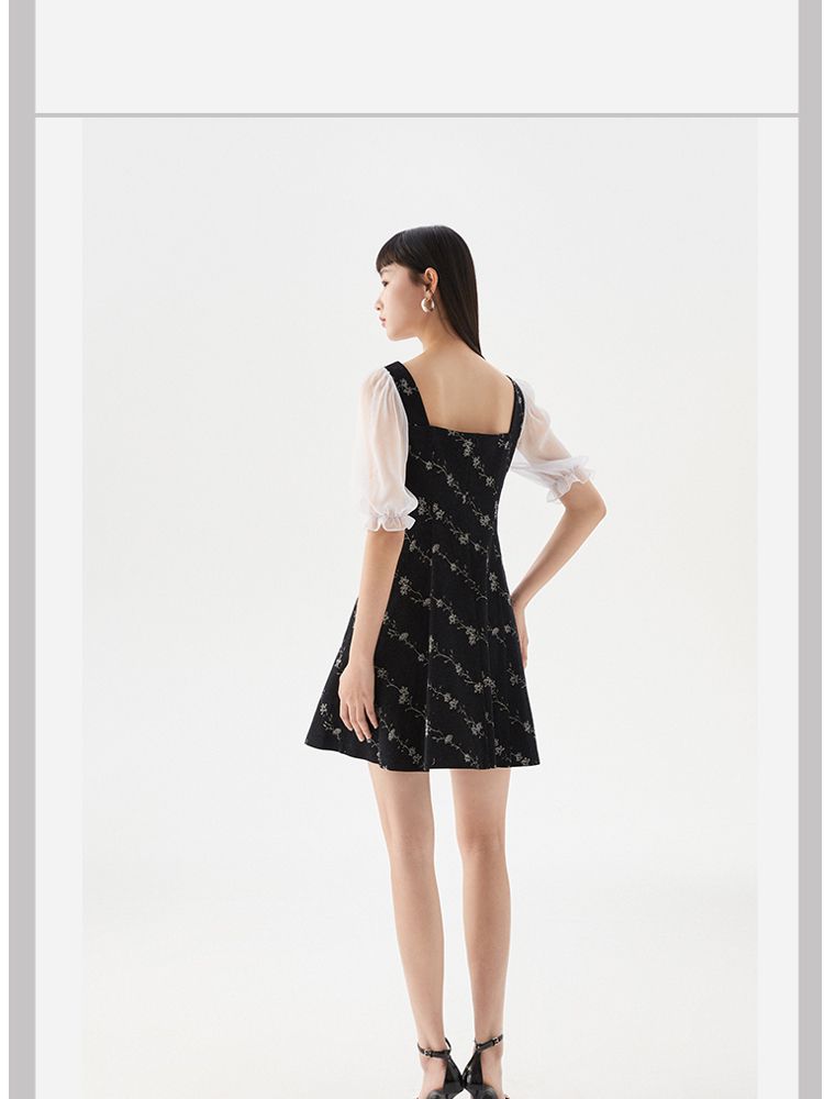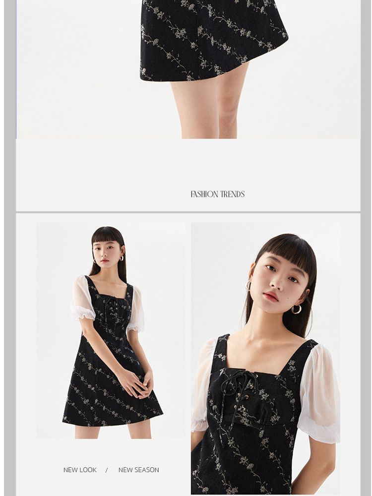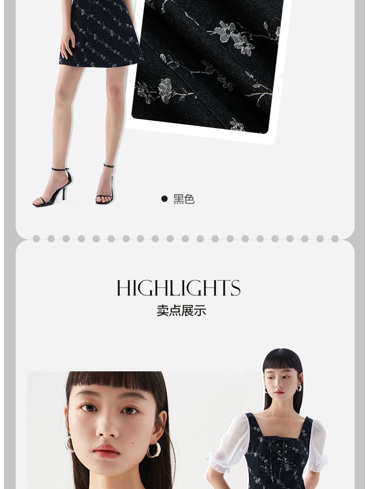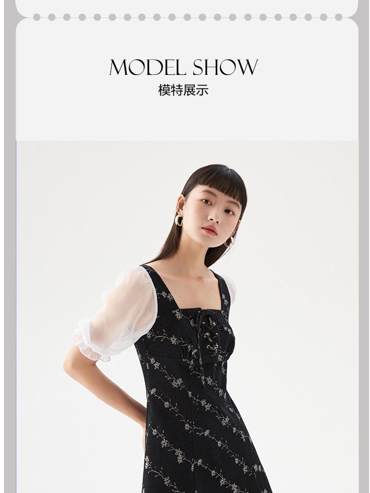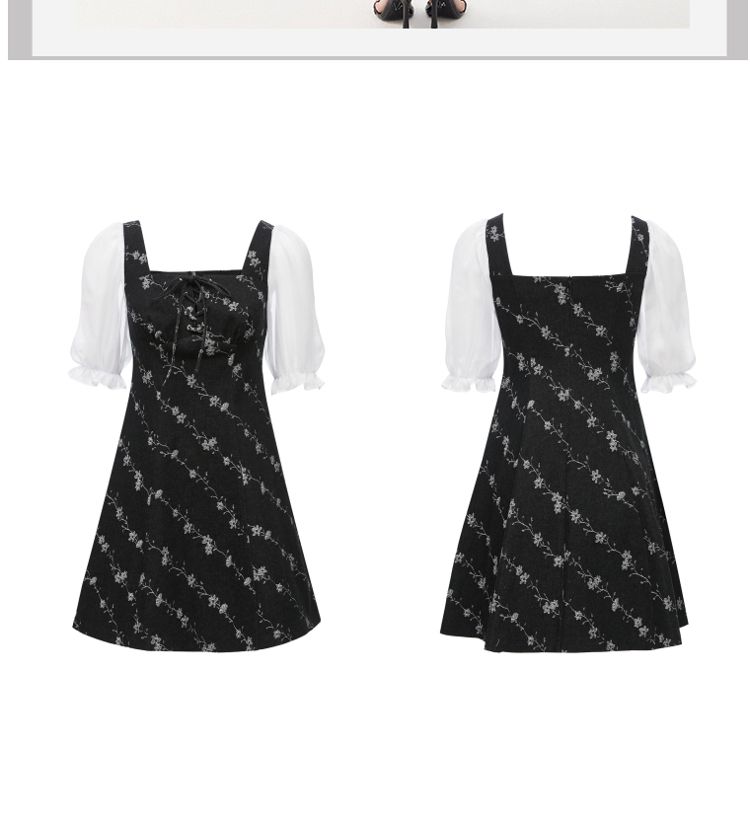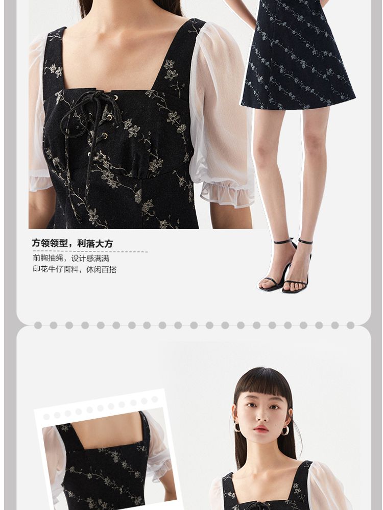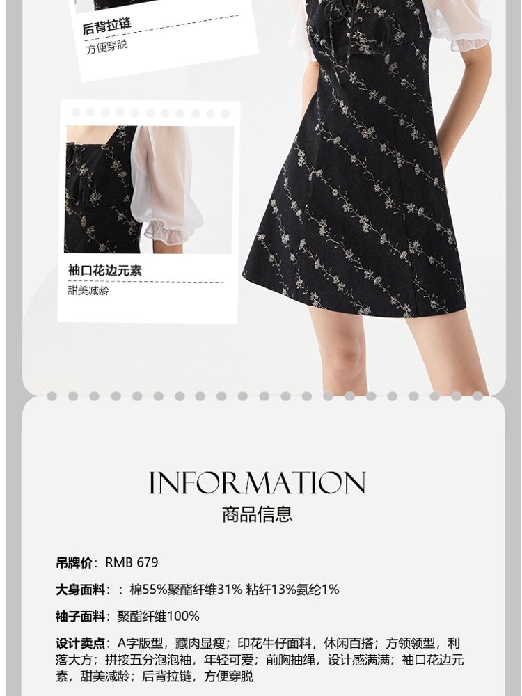 商品名称:【拼接设计】秋款休闲A摆印花5分泡泡袖牛仔裙连衣裙 704977
