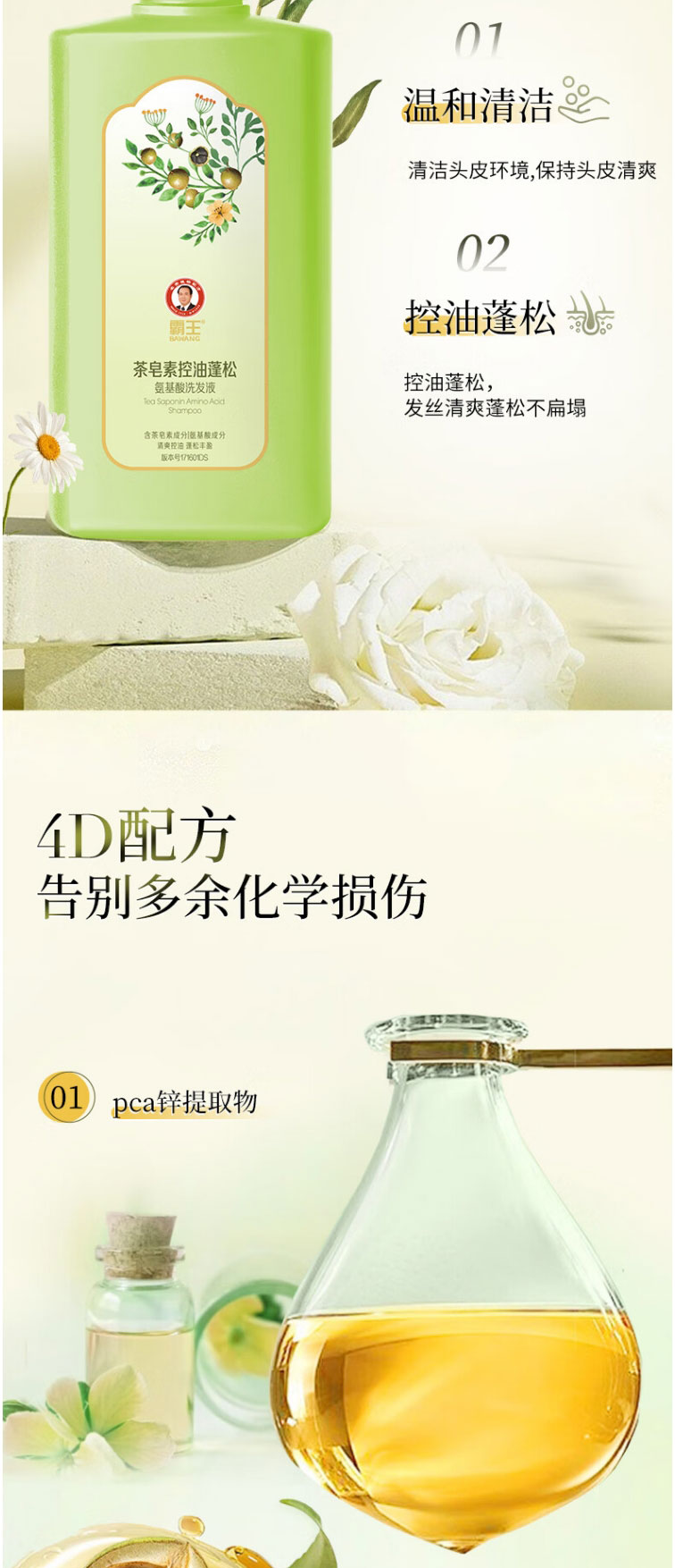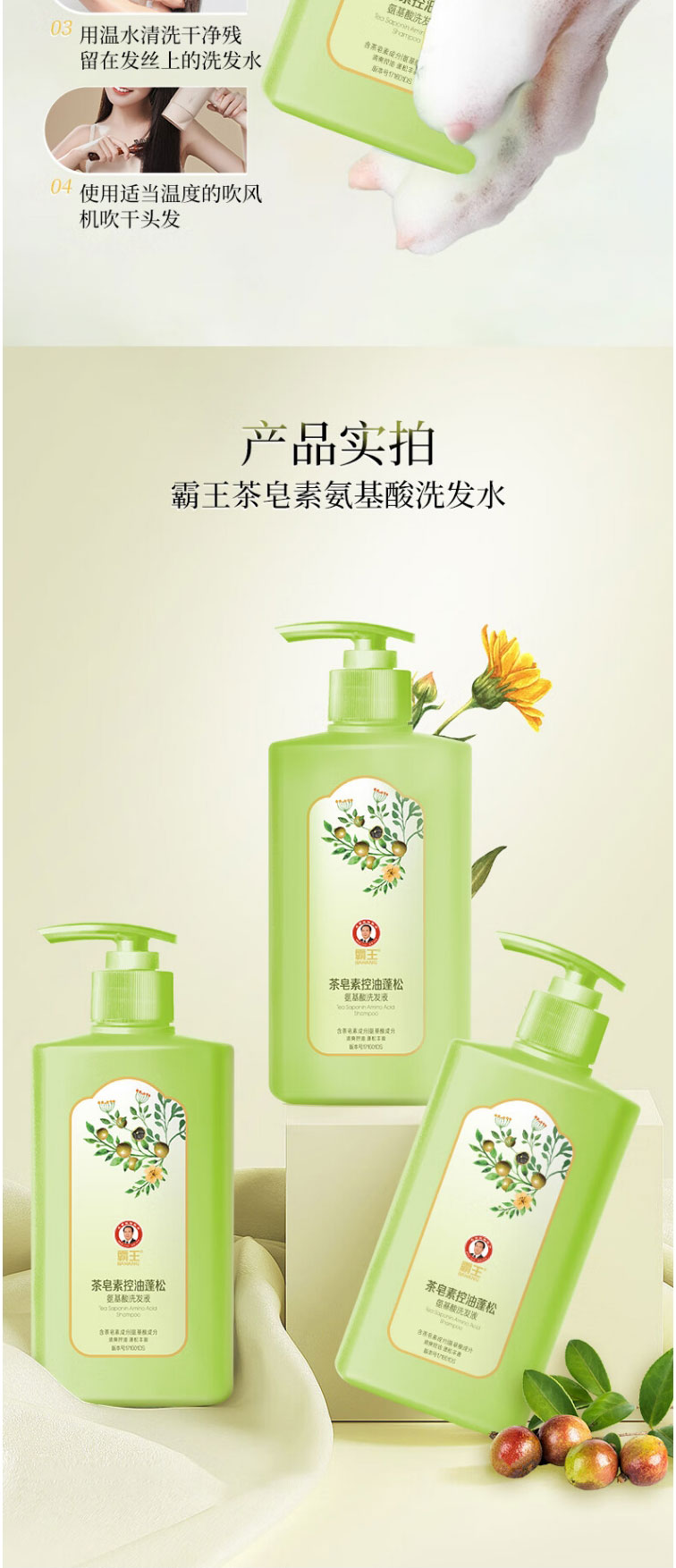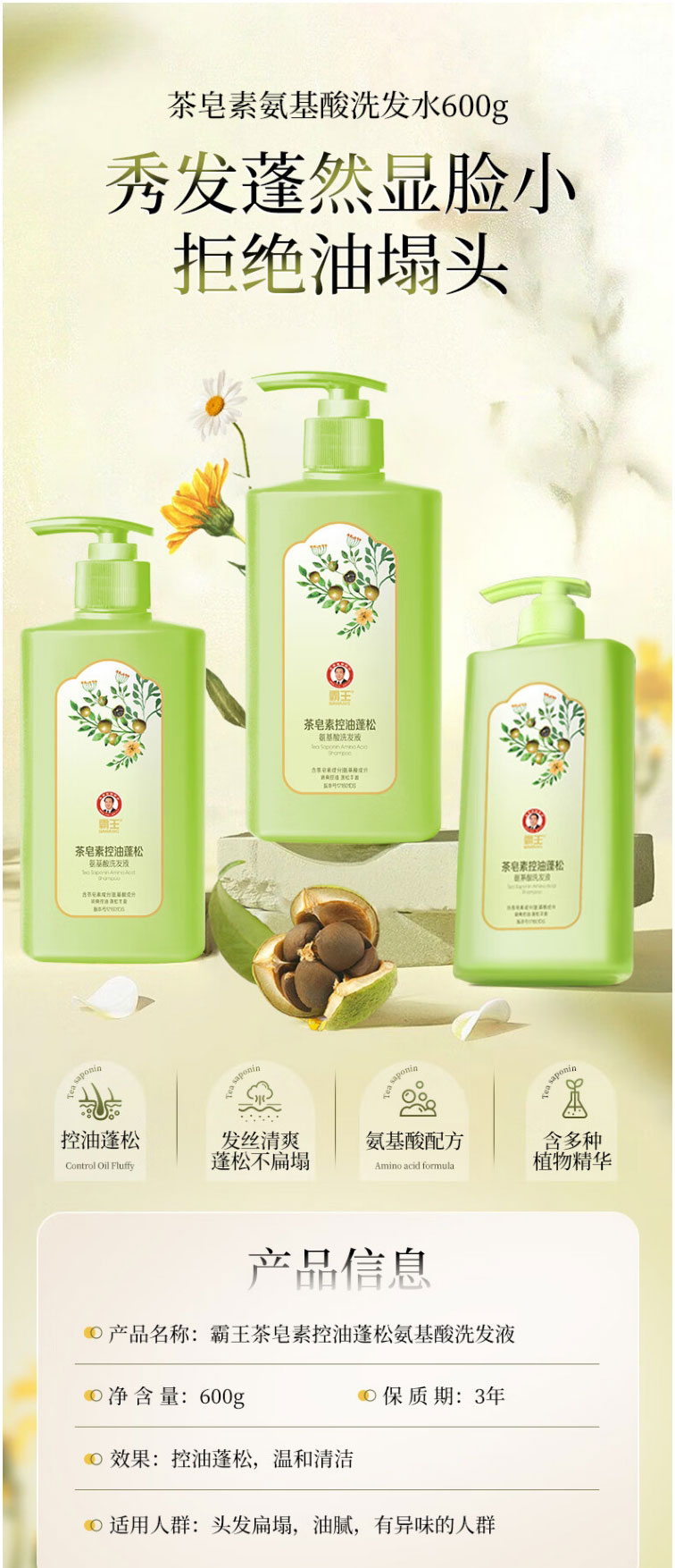 商品名称:霸王茶皂素控油蓬松氨基酸洗发液600g