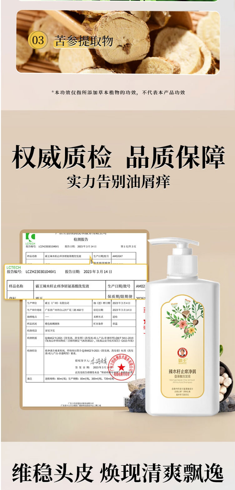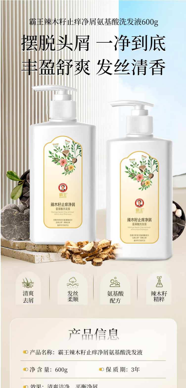 商品名称:霸王辣木籽止痒净屑氨基酸洗发液600g