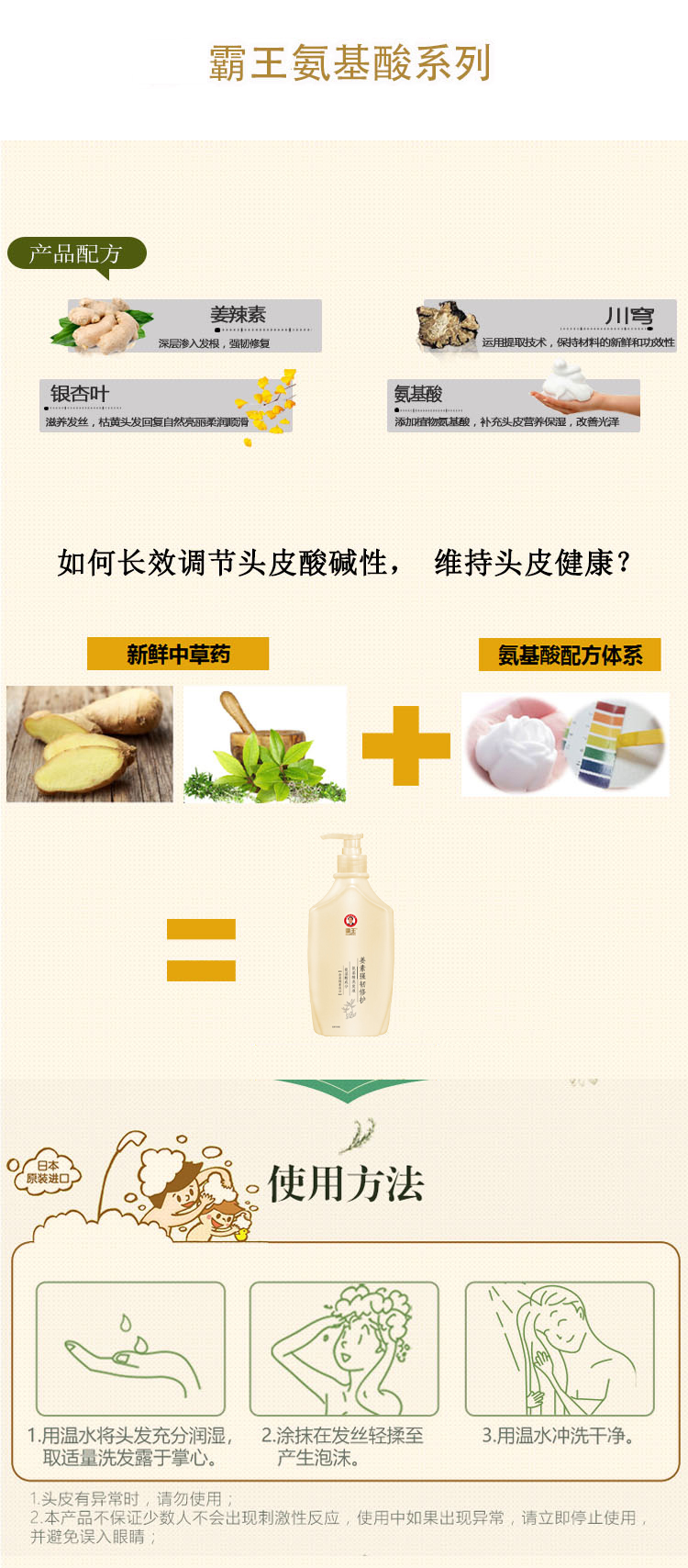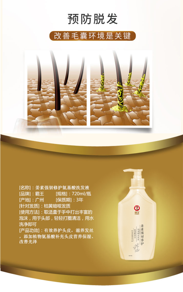 商品名称:霸王姜素强韧修护氨基酸洗发液720ml