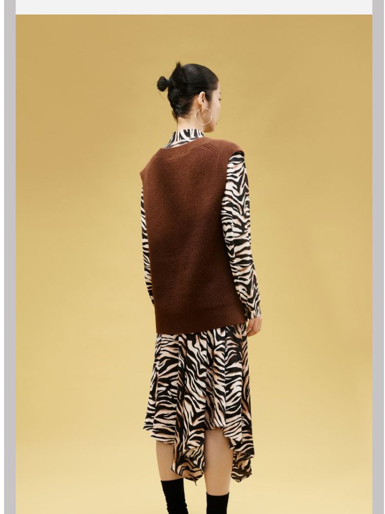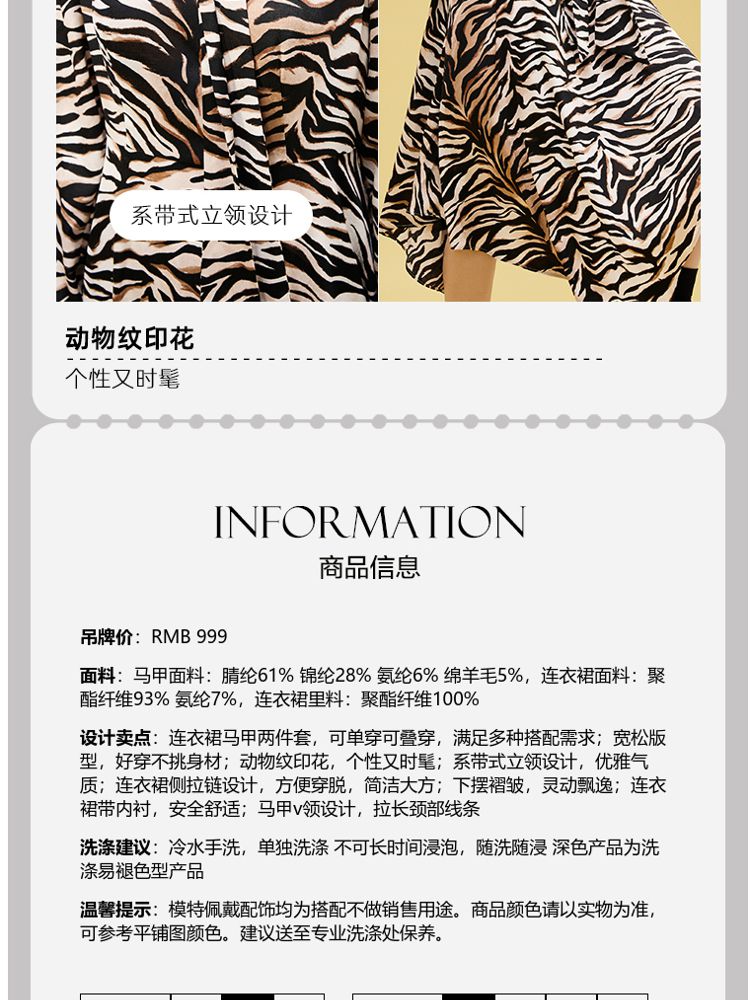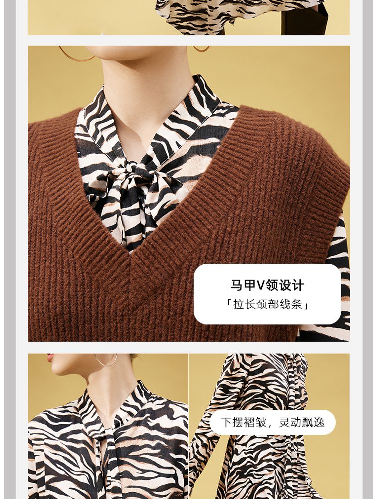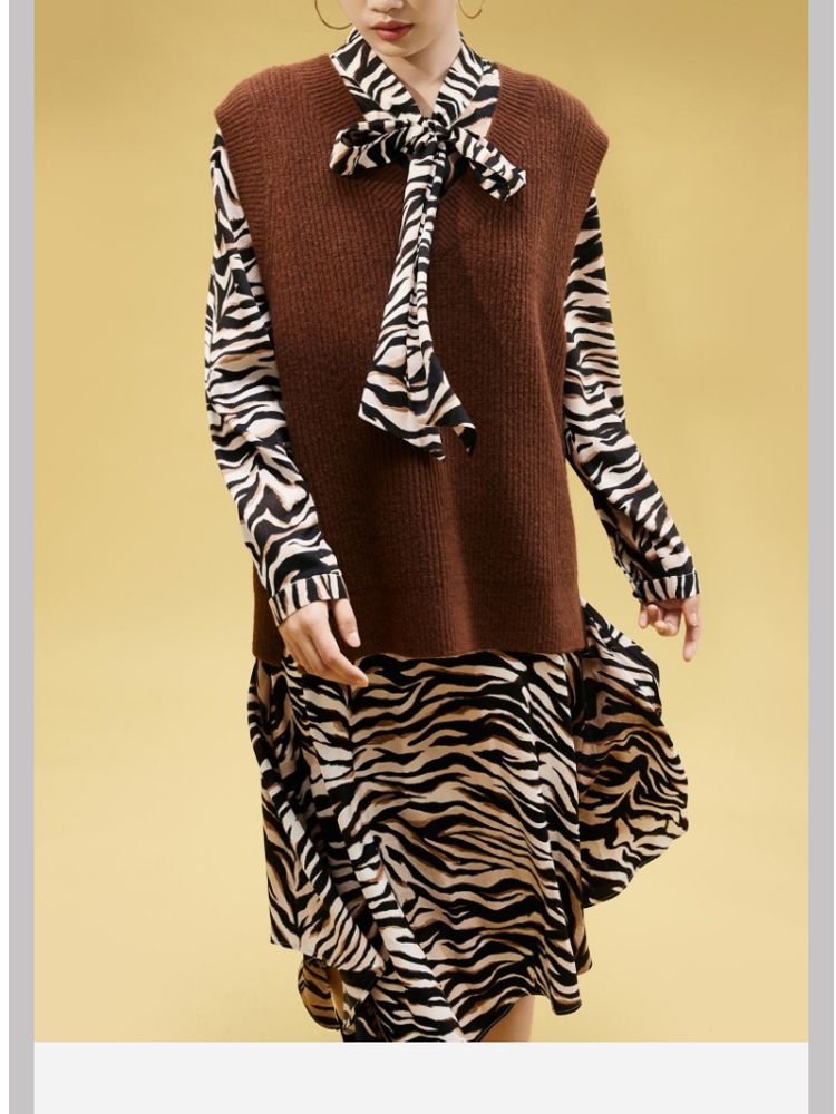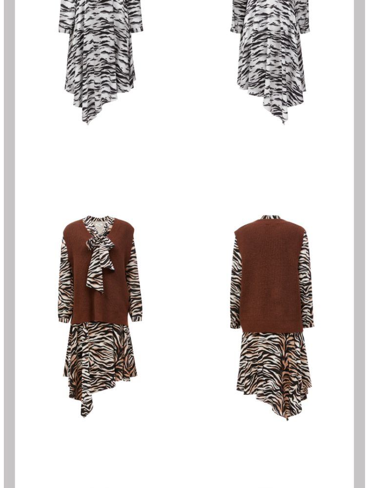 商品名称:【春夏美拉德】【专柜同款新】动物纹连衣裙针织马甲两件套百搭 552081