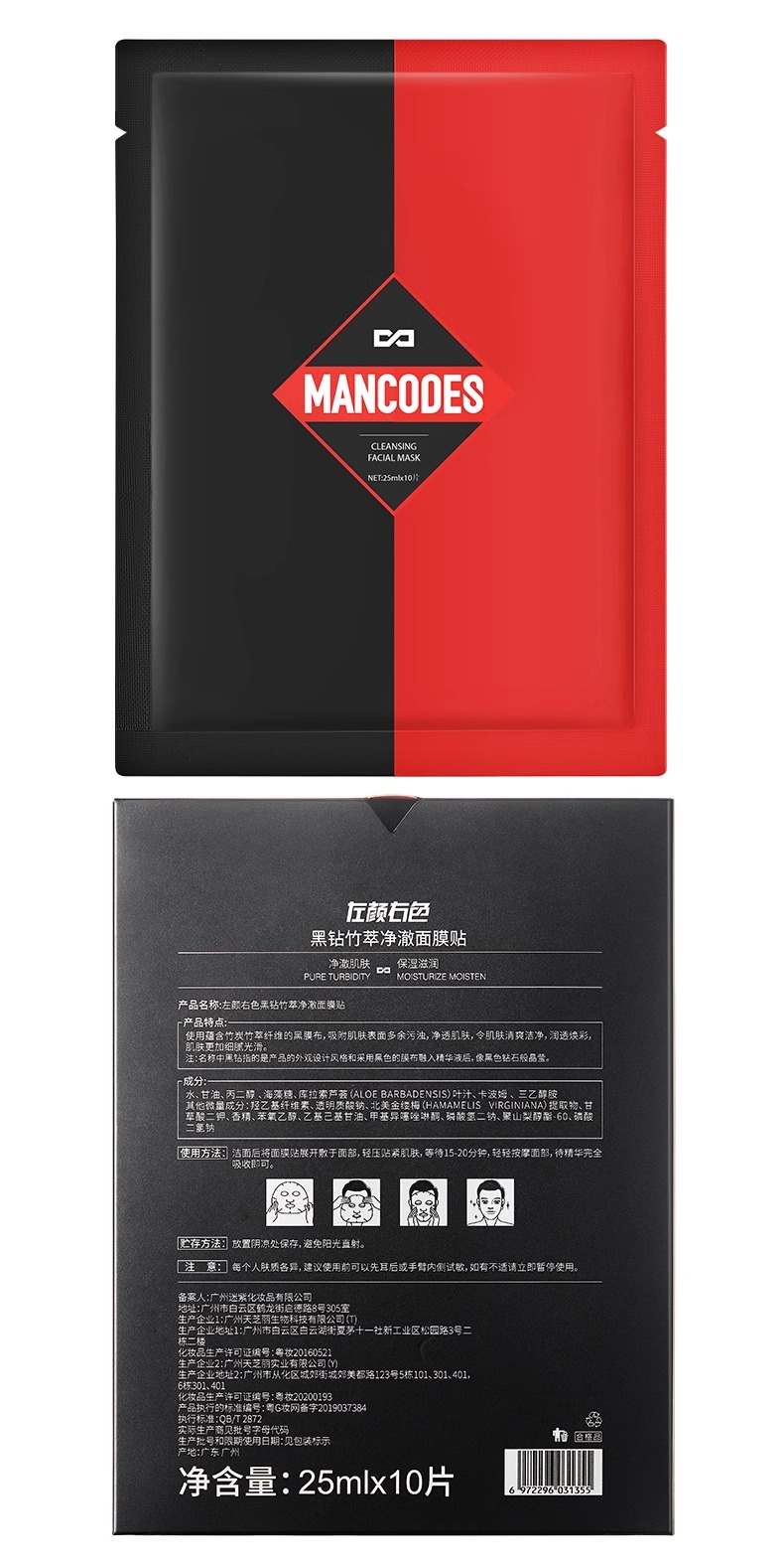 商品名称:MANCODES/左颜右色黑钻竹萃净澈面膜贴25ml*10片