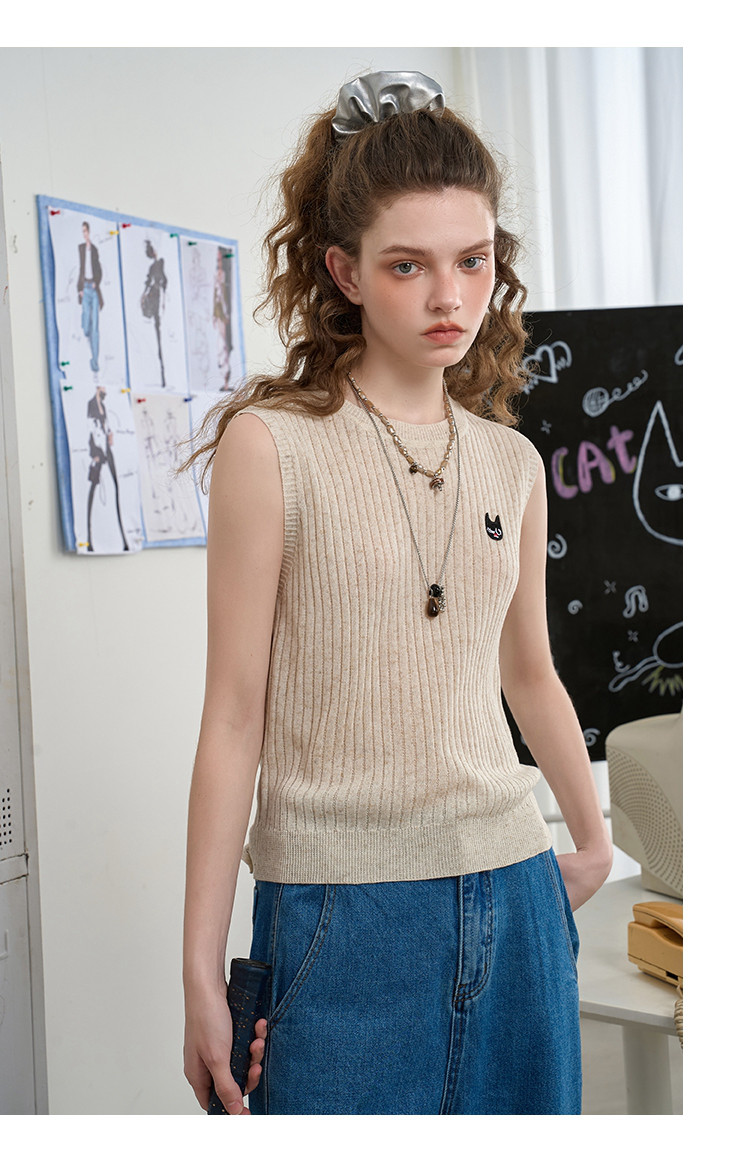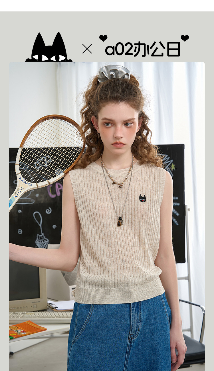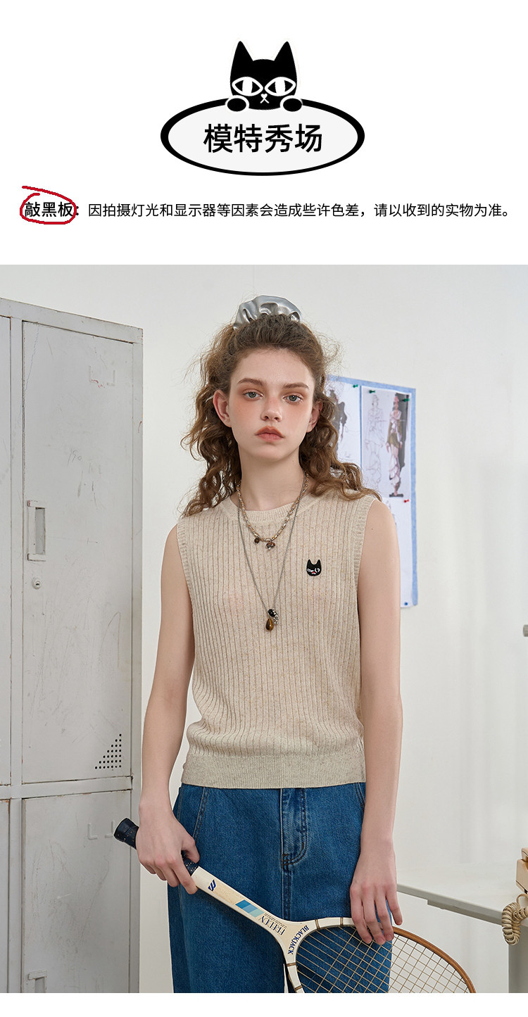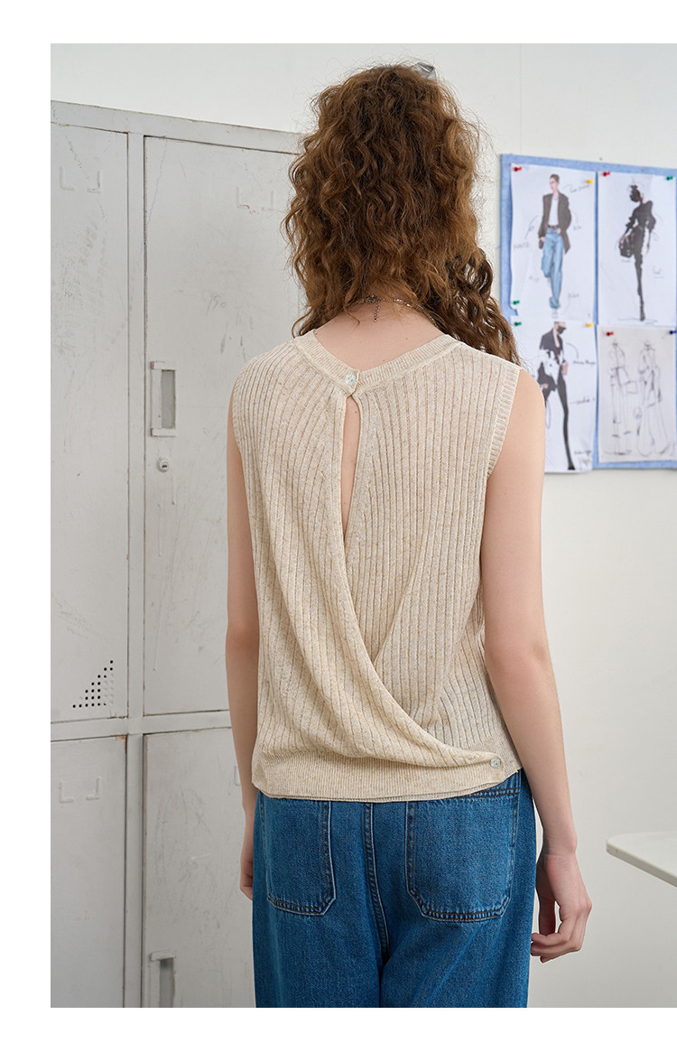 商品名称:镂空外穿设计感交叉露背无袖背心2025夏季百搭休闲女式针织衫 597533