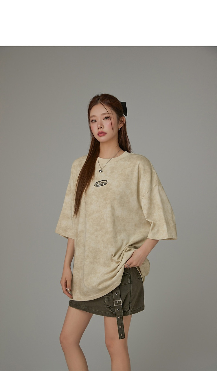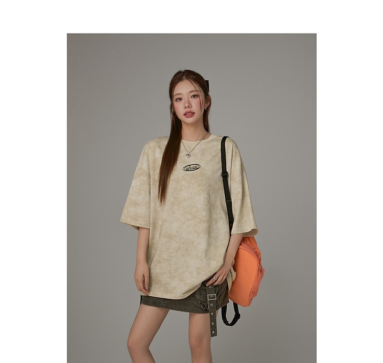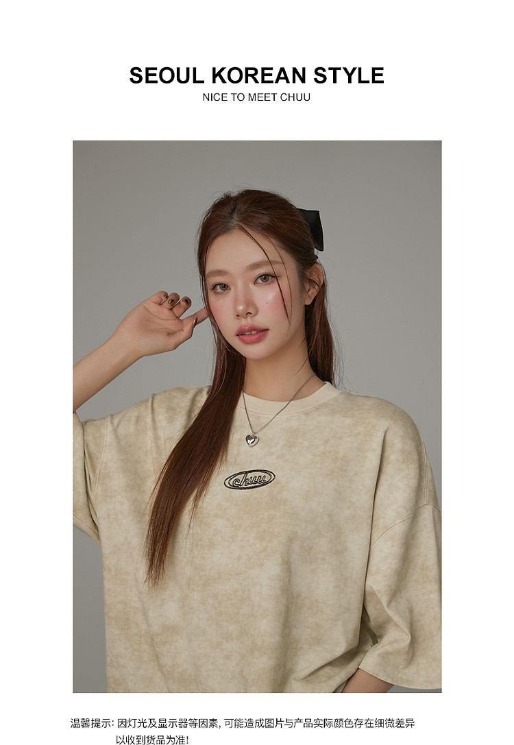 商品名称:字母刺绣晕染短袖T恤女2025夏学院风宽松中长款上衣 902483