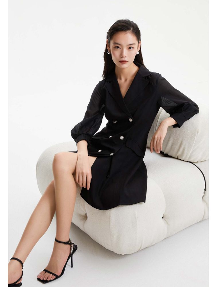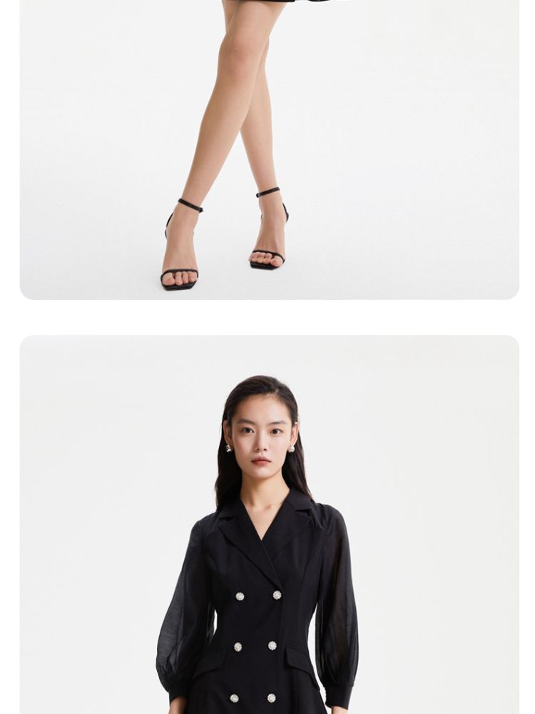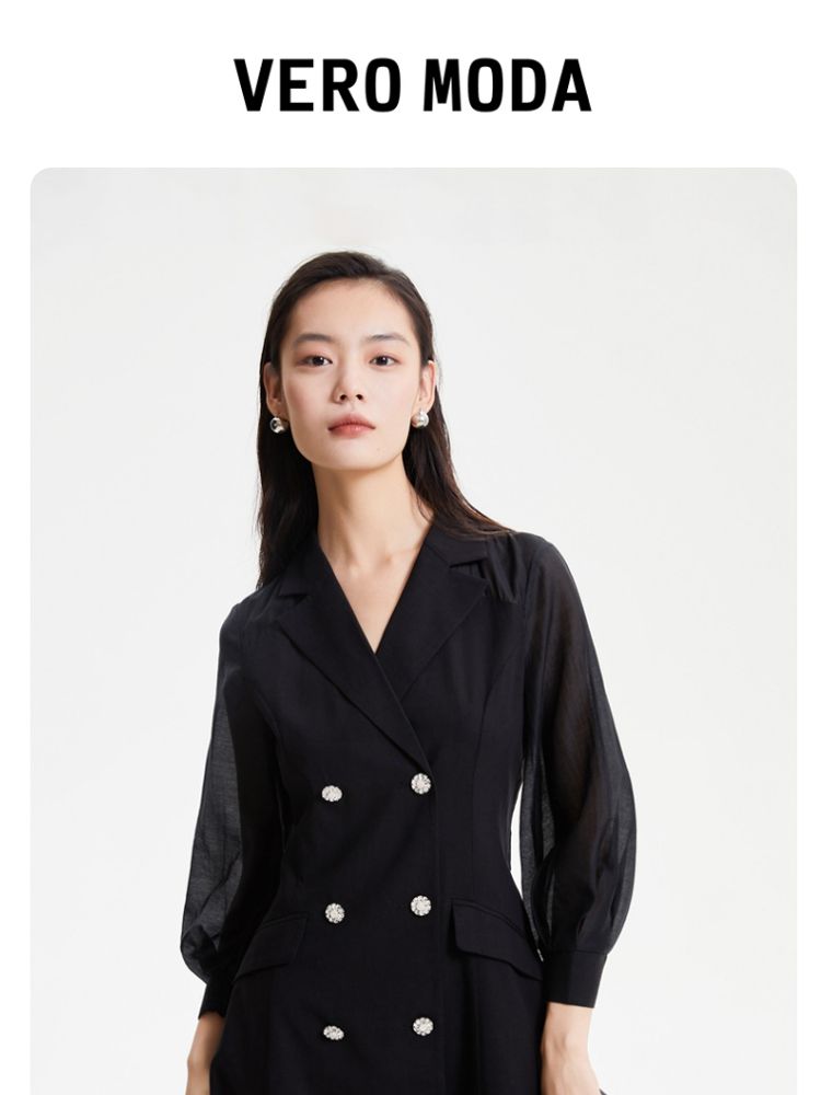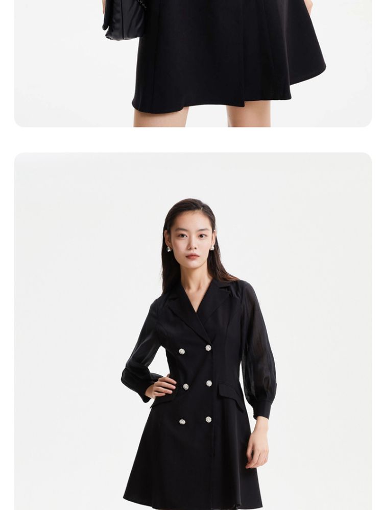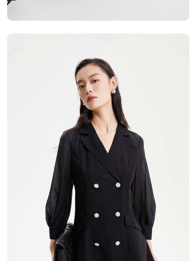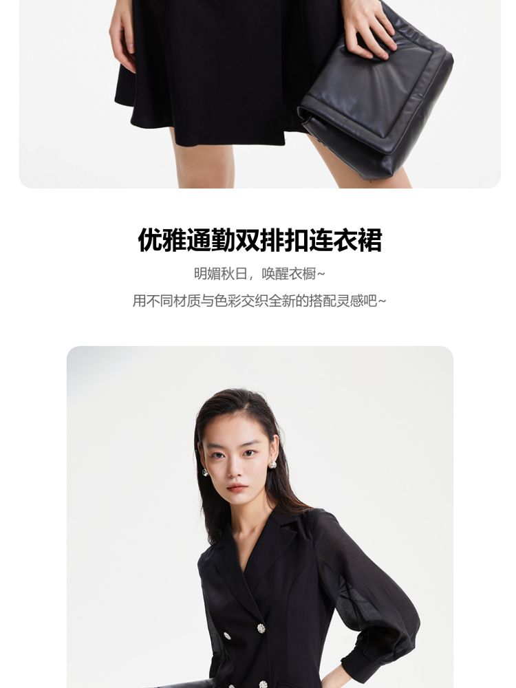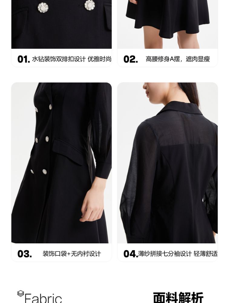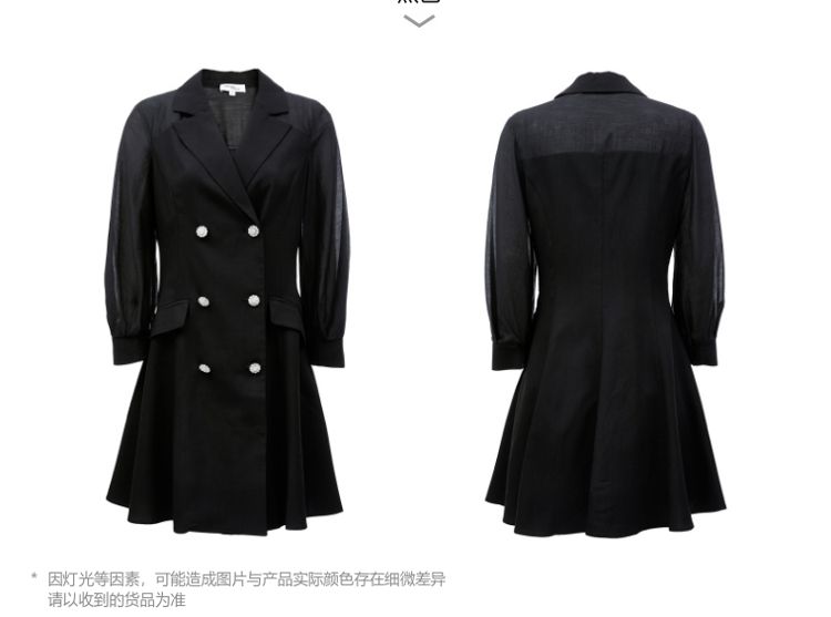 商品名称:【春夏专柜款】优雅双排扣修身A摆显瘦连衣裙气质百搭时尚 672145