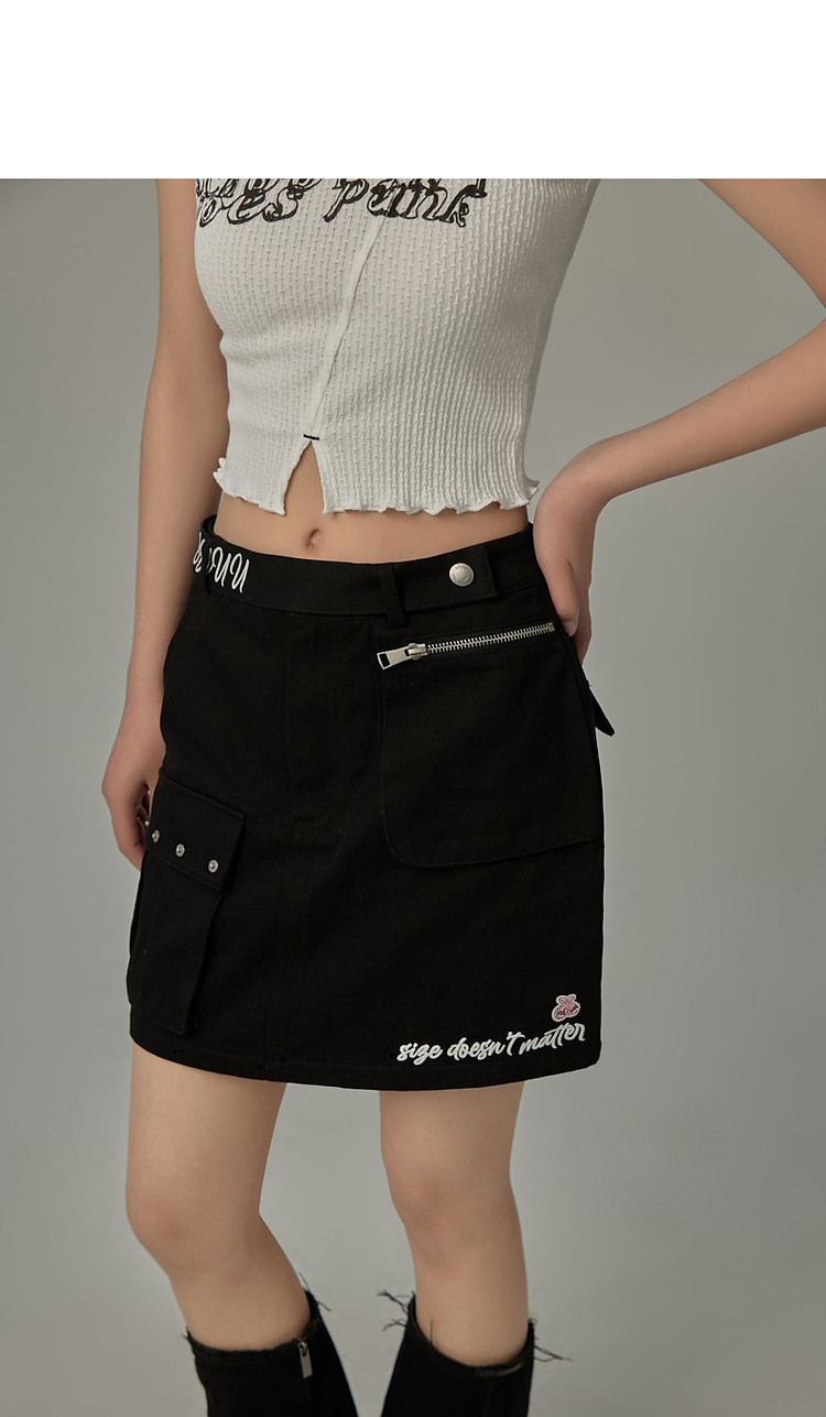 字母刺绣半身裙女2025夏小樱桃不对称口袋a字短裙子 314579