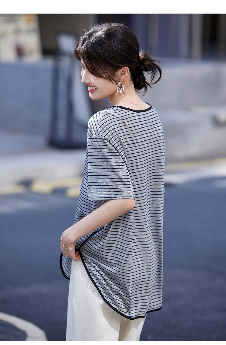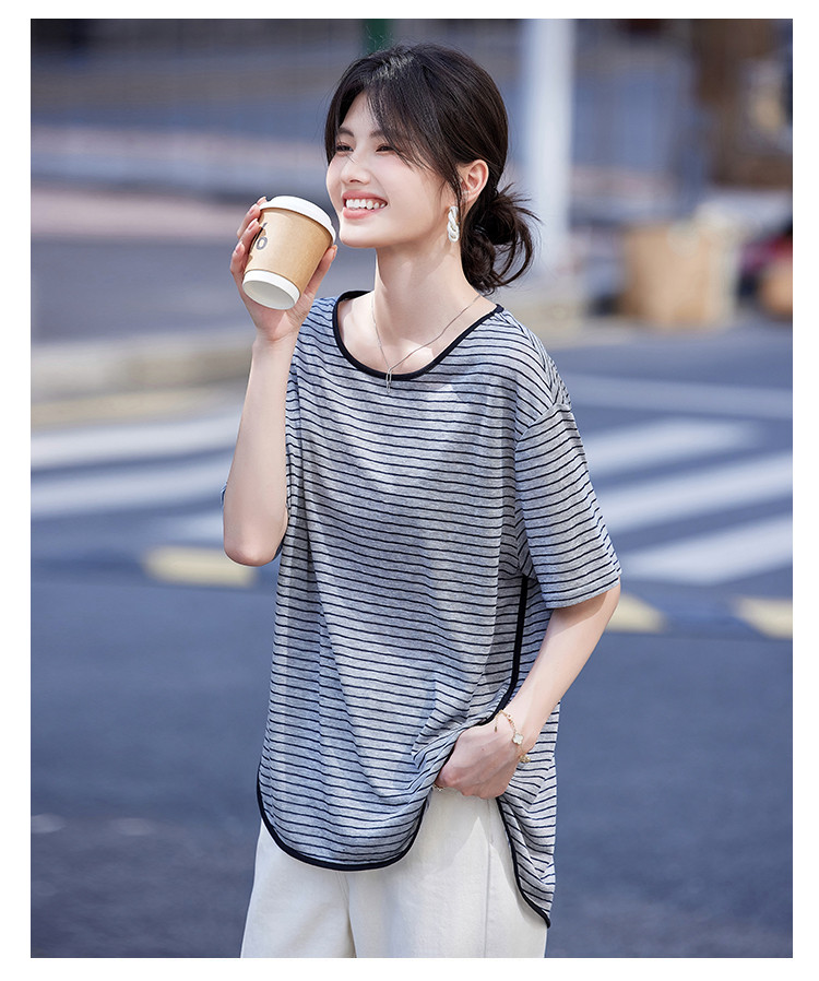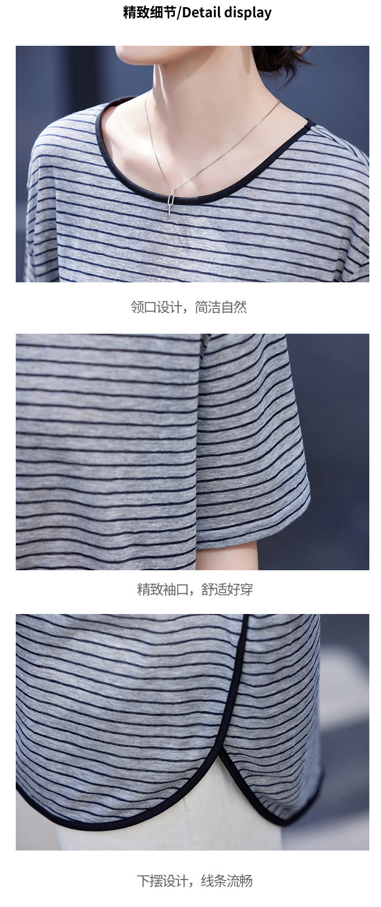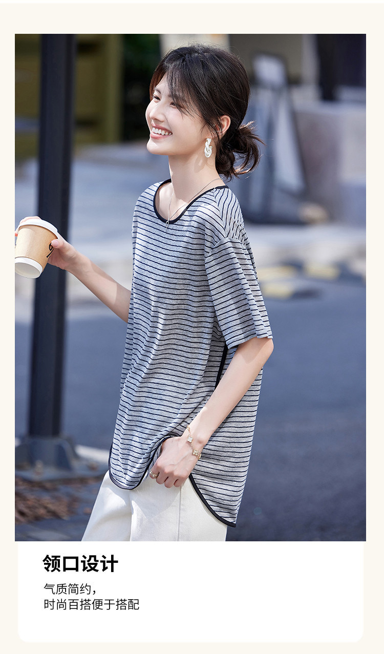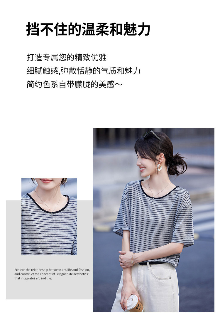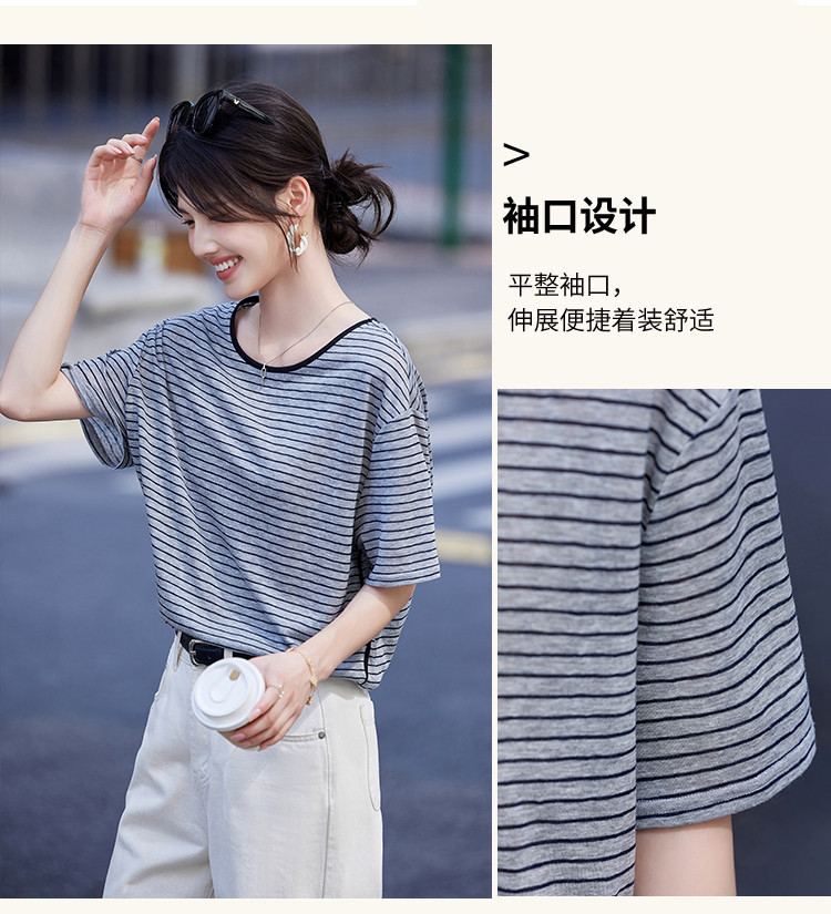 商品名称:【莱赛尔T恤】条纹显瘦短袖t恤女夏季2025凉爽透气短袖上衣 942815