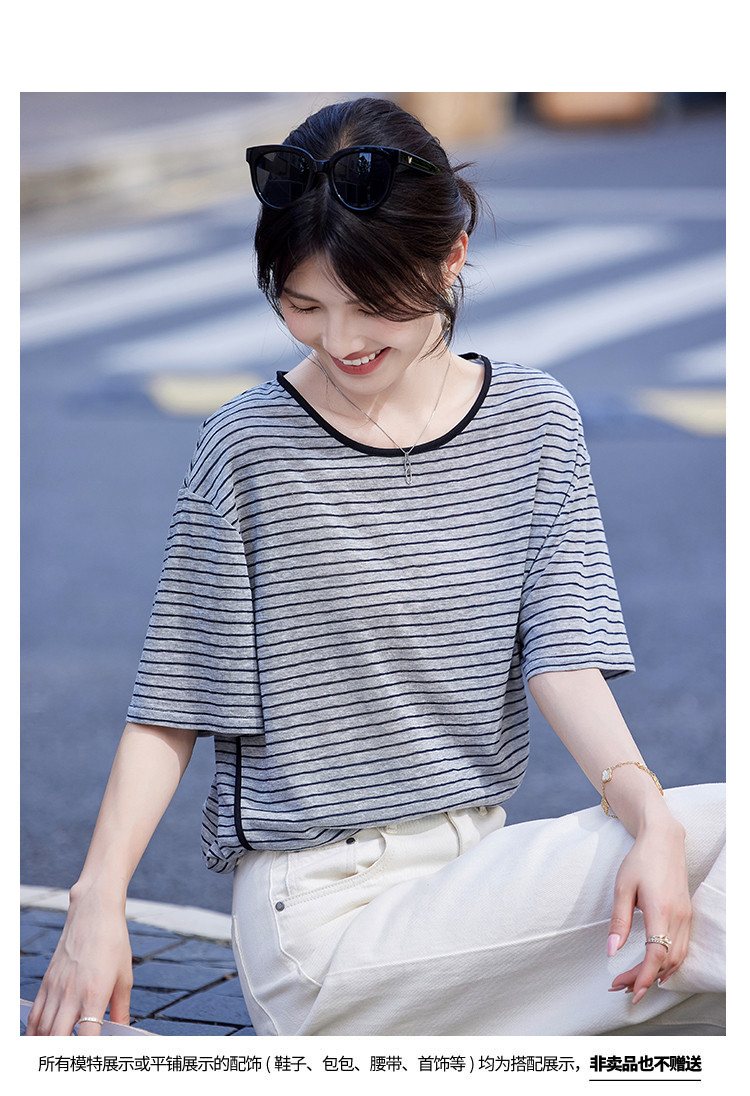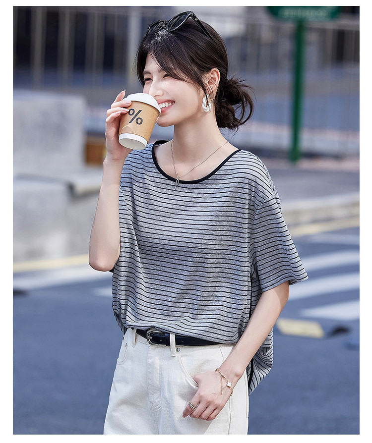 【莱赛尔T恤】条纹显瘦短袖t恤女夏季2025凉爽透气短袖上衣 942815