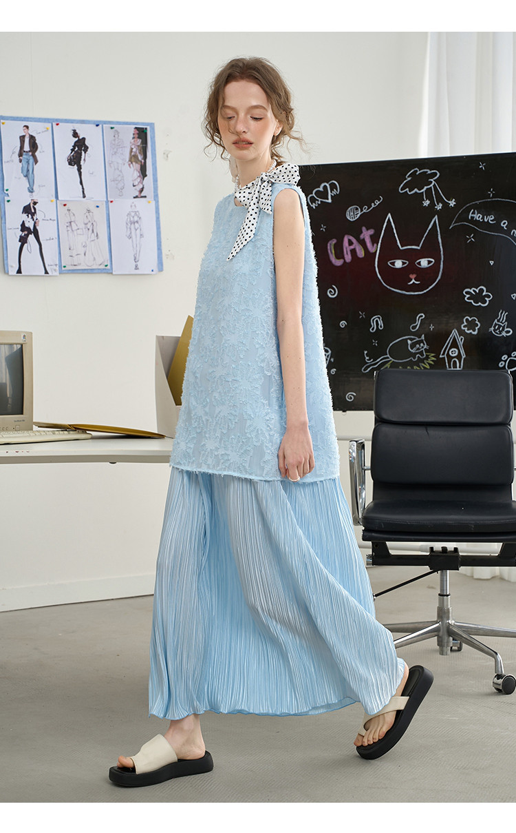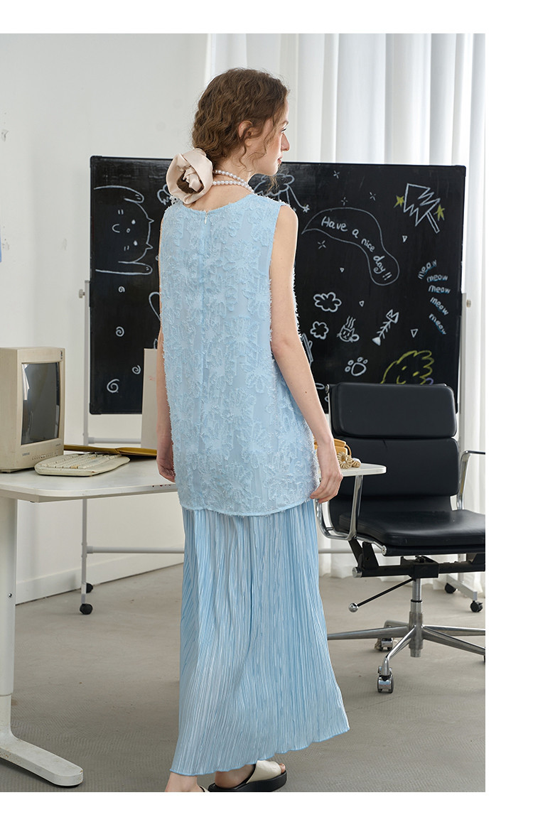 肌理感拼接假两件度假风背心裙2025夏季百搭休闲女式连衣裙 627229