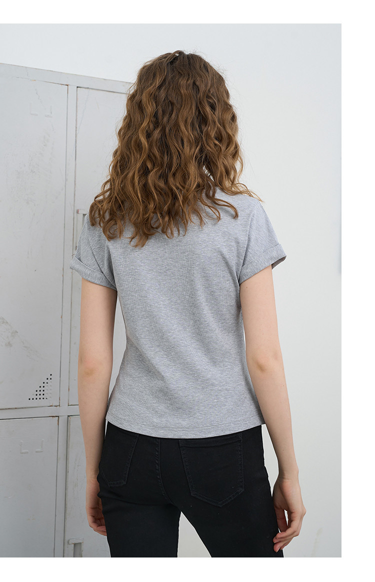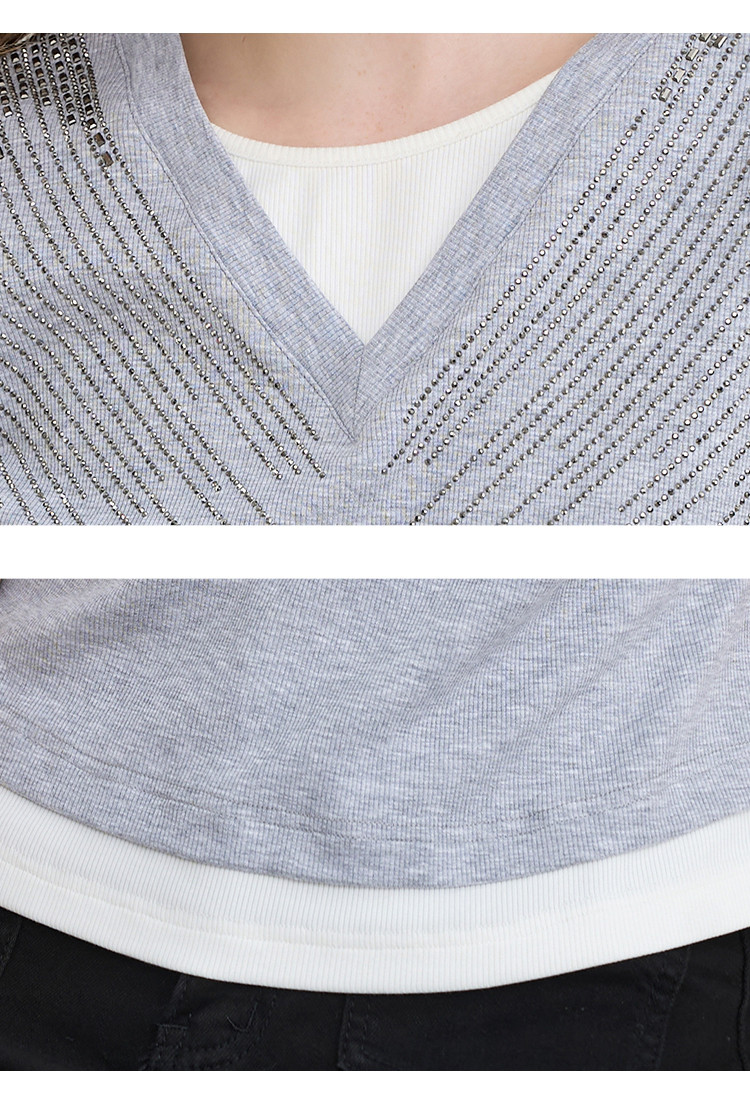 商品名称:收腰遮肚假两件V领短款上衣2025夏季时尚百搭女式T恤 467805