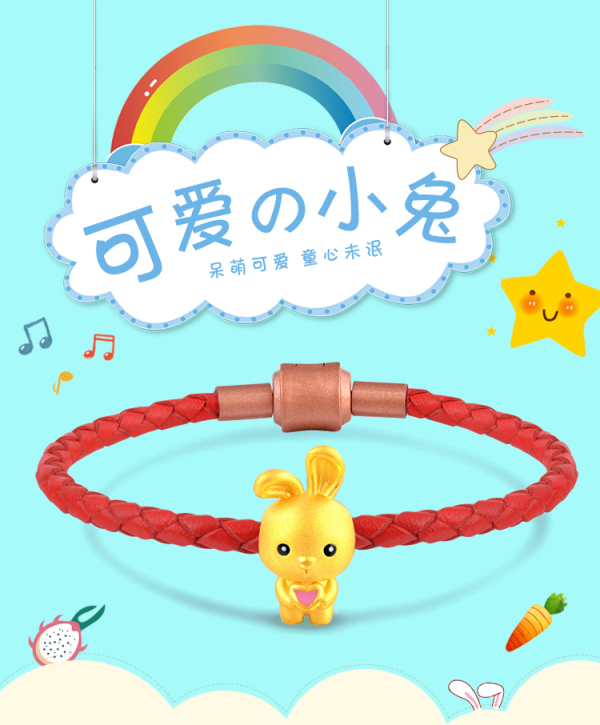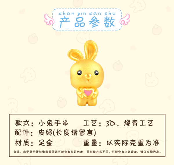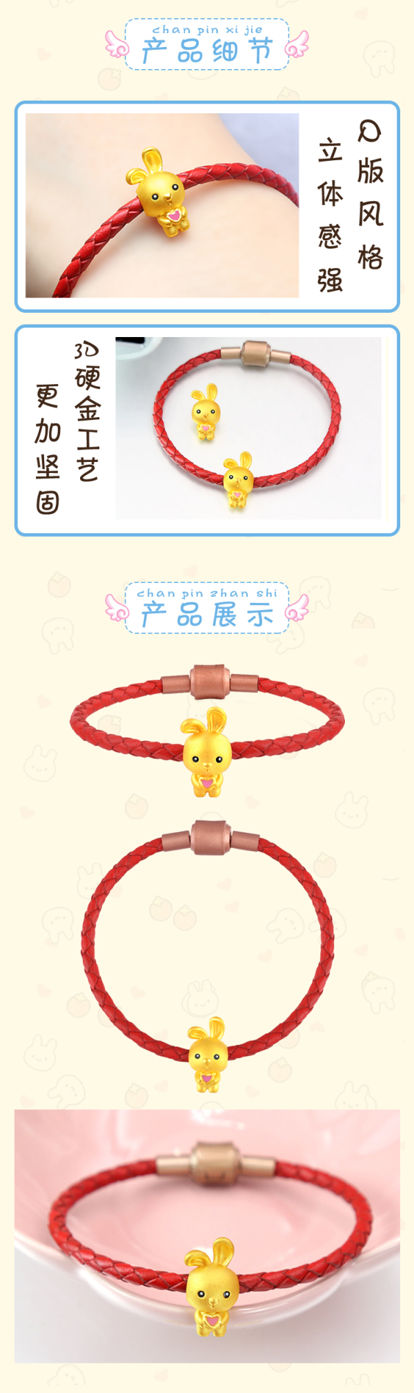 商品名称:佐禧佑福黄金转运珠手链女999足金生肖兔3d硬金小兔子手绳本命年红绳手链ZXYFZXZ112