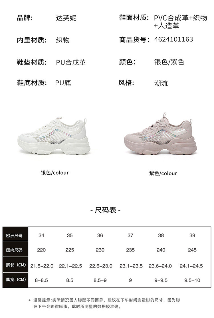 商品名称:【新款推荐】25夏季薄款透气老爹鞋女小个子增高厚底休闲运动鞋 947735