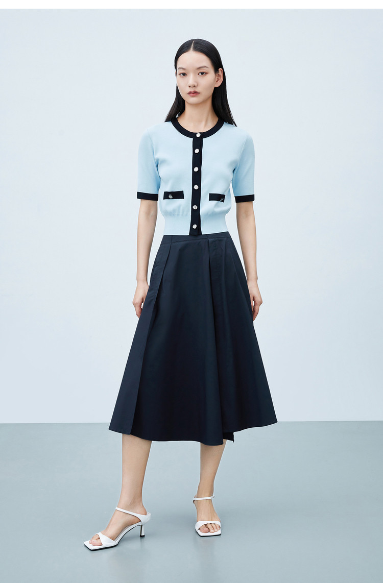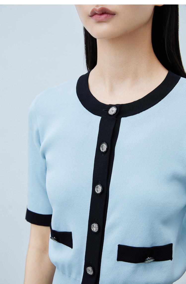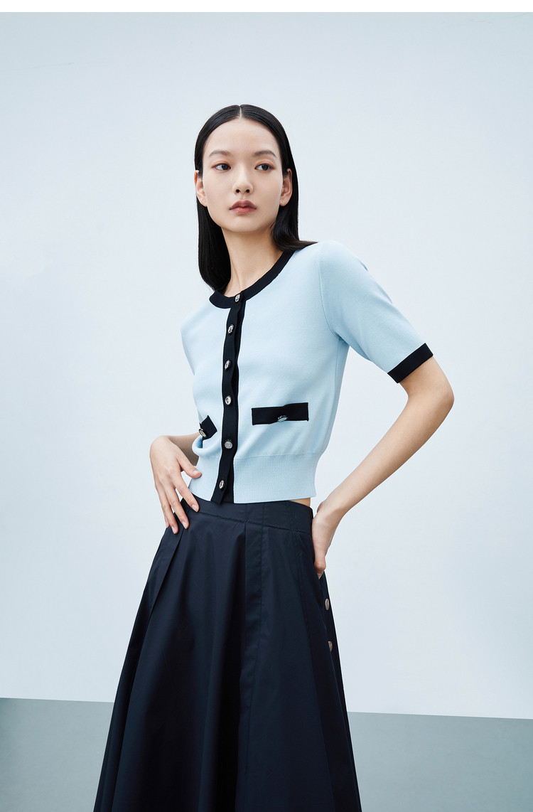 商品名称:春季短袖上衣女法式小香风圆领薄款气质短袖针织开衫女 876827