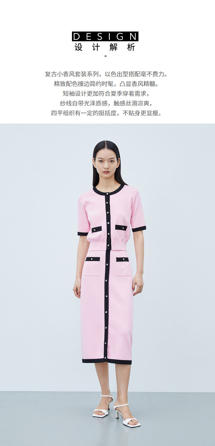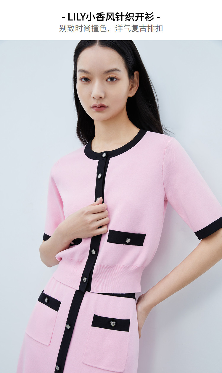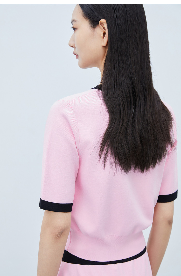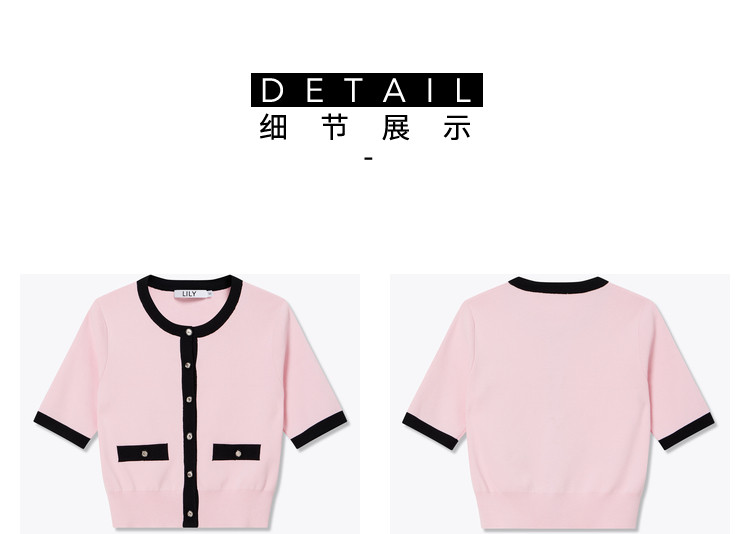 春季短袖上衣女法式小香风圆领薄款气质短袖针织开衫女 876827