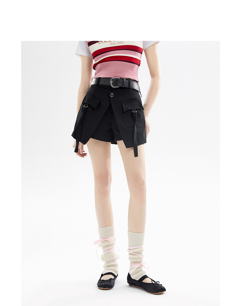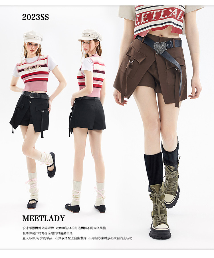 商品名称:夏装小众设计感假两件休闲短裤女美式性感辣妹裤子 962388