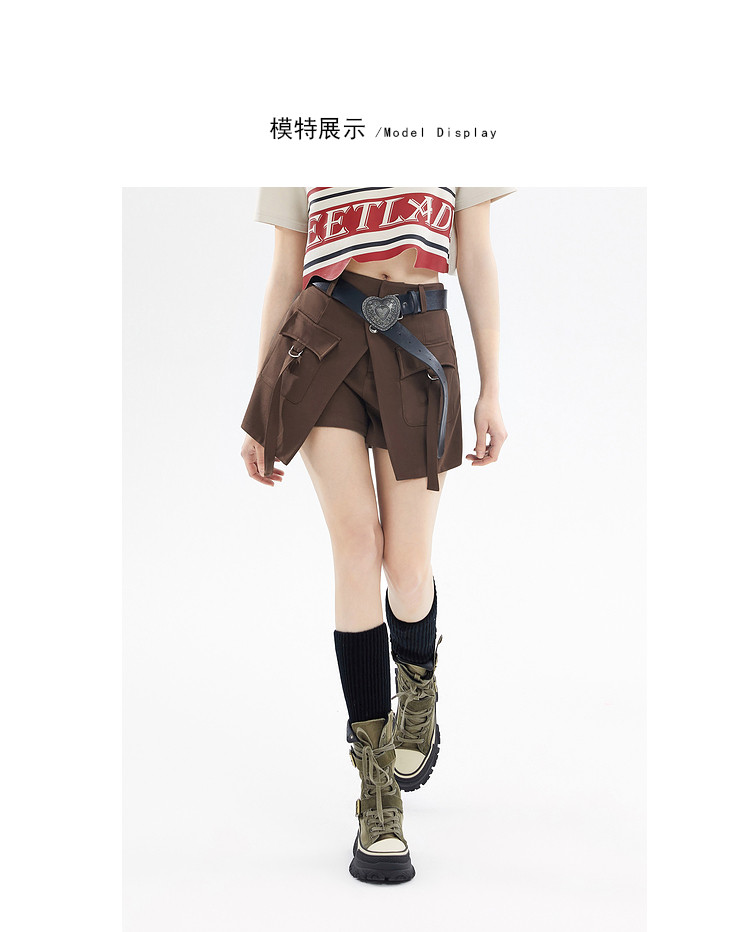 夏装小众设计感假两件休闲短裤女美式性感辣妹裤子 962388